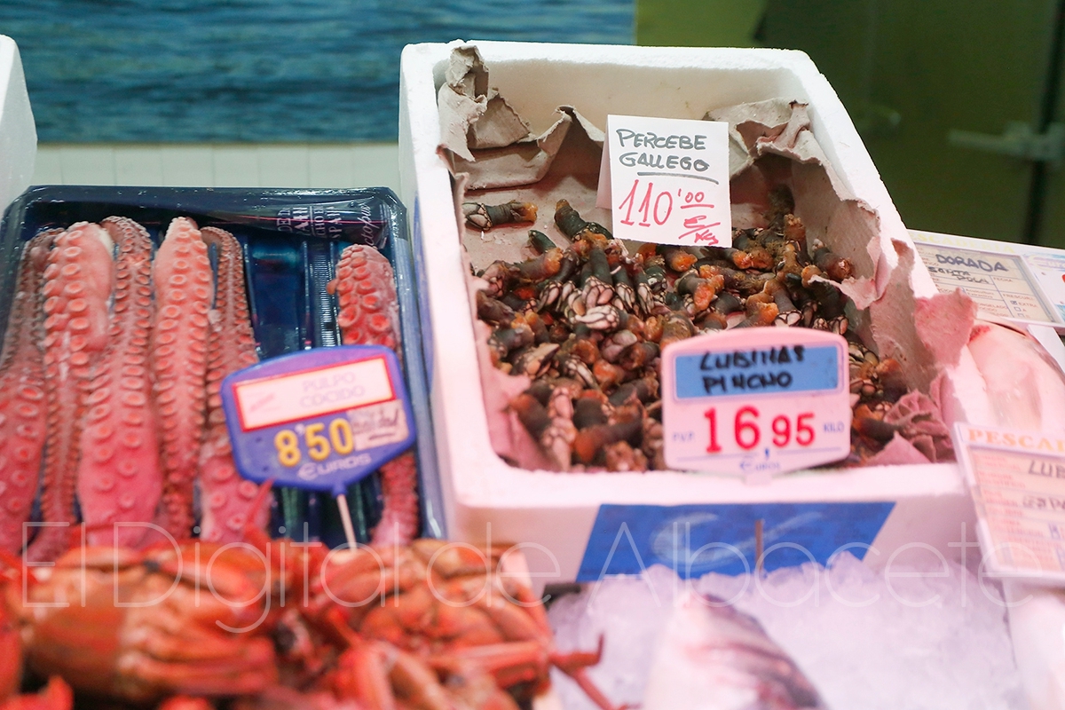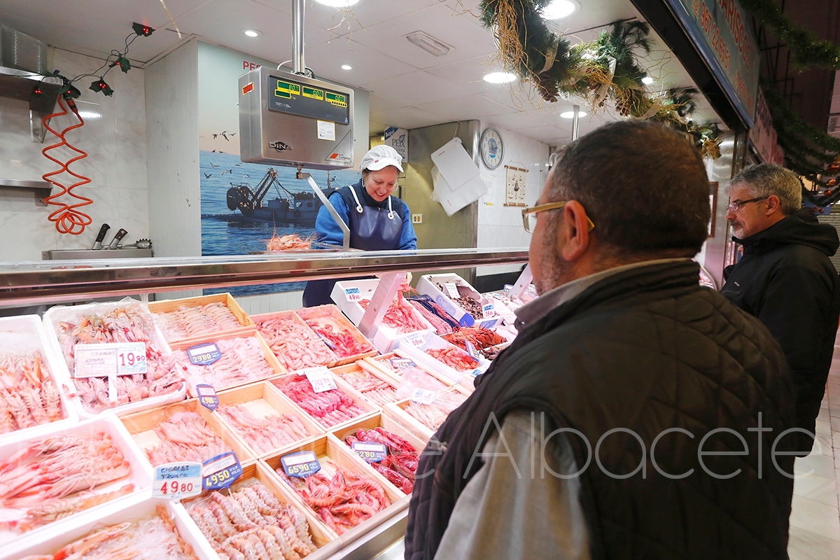Si la carne es una de las apuestas seguras de los albaceteños, el marisco no se queda atrás, como en la mañana de este lunes se podía apreciar en las pescaderías de Villacerrada. Según explica Marisa, de ‘Mariscos Artigao’, los clientes, se llevan “todo tipo de marisco”. Gamba, langostino, vieira, percebes o cigalas, de las que podemos encontrar tres clases, sobre los 40 euros el kilo, para este producto los albaceteños piden consejos de cocción, igual que para las nécoras.