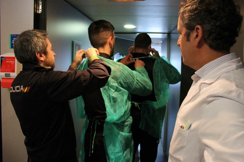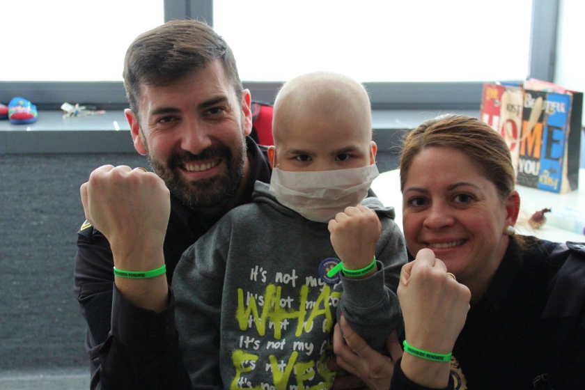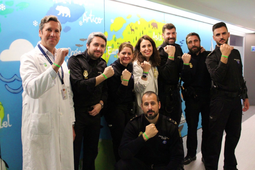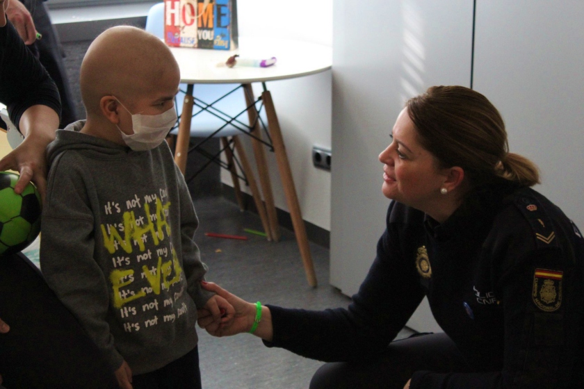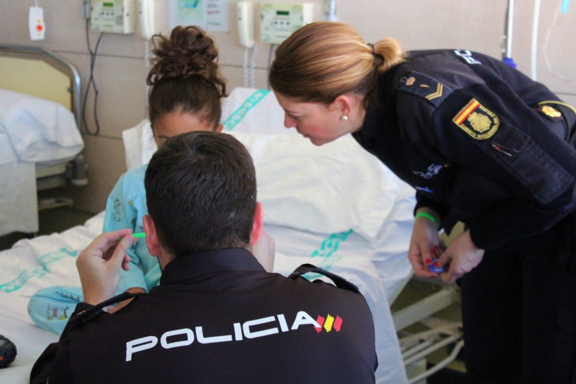 Pulseras, sus propias placas de Policía y hasta conversaciones vía ‘walkie’ han formado parte la mañana de estos pequeños pacientes, que han regalado a los profesionales de la Seguridad del Estado sus sonrisas, trasmitiéndoles su fuerza para seguir luchando.