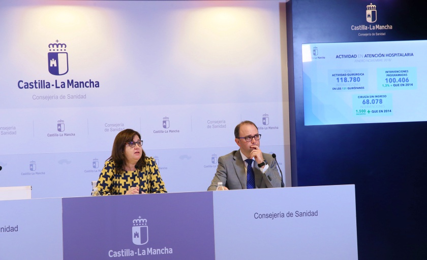 En el ámbito hospitalario, de enero a noviembre de 2018, se realizaron en los 131 quirófanos de los hospitales del SESCAM más de 100.400 intervenciones quirúrgicas programadas, un 1,3 por ciento más que en el mismo periodo del año anterior. Leal ha mencionado el esfuerzo que se está haciendo para impulsar la cirugía sin ingreso, que ya supone casi el 68 por ciento de la actividad quirúrgica programada.