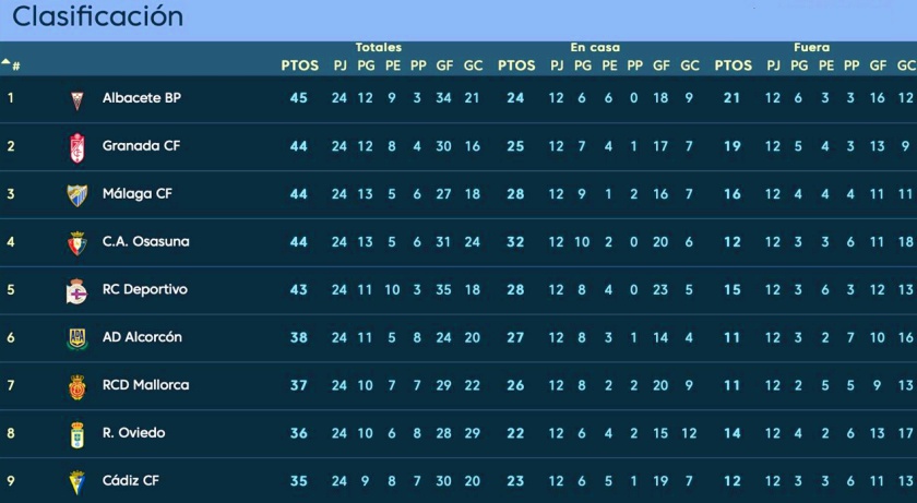 También le ha ocurrido lo mismo a Las Palmas y Elche, mientras que al resto de contrincantes verán sumado su casillero de manera paulatina en el devenir de la competición. Así las cosas, a todos los efectos, el Albacete Balompié es ahora mismo y hasta que dé comienzo la jornada 25, líder de la clasificación en LaLiga 123.