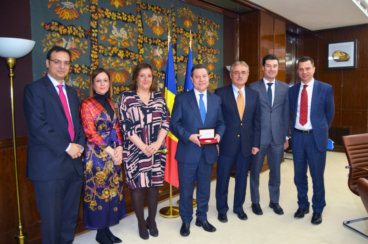 Emiliano García-Page, que ha viajado acompañado por la consejera de Economía, Empresas y Empleo, Patricia Franco, y por la directora general de Turismo, Comercio y Artesanía, Ana Isabel Fernández Samper, ha entregado al mandatario rumano una espada toledana y una muestra de productos gastronómicos de la región. Por su parte, el jefe del Ejecutivo autonómico ha recibido una placa de recuerdo de la visita al país.