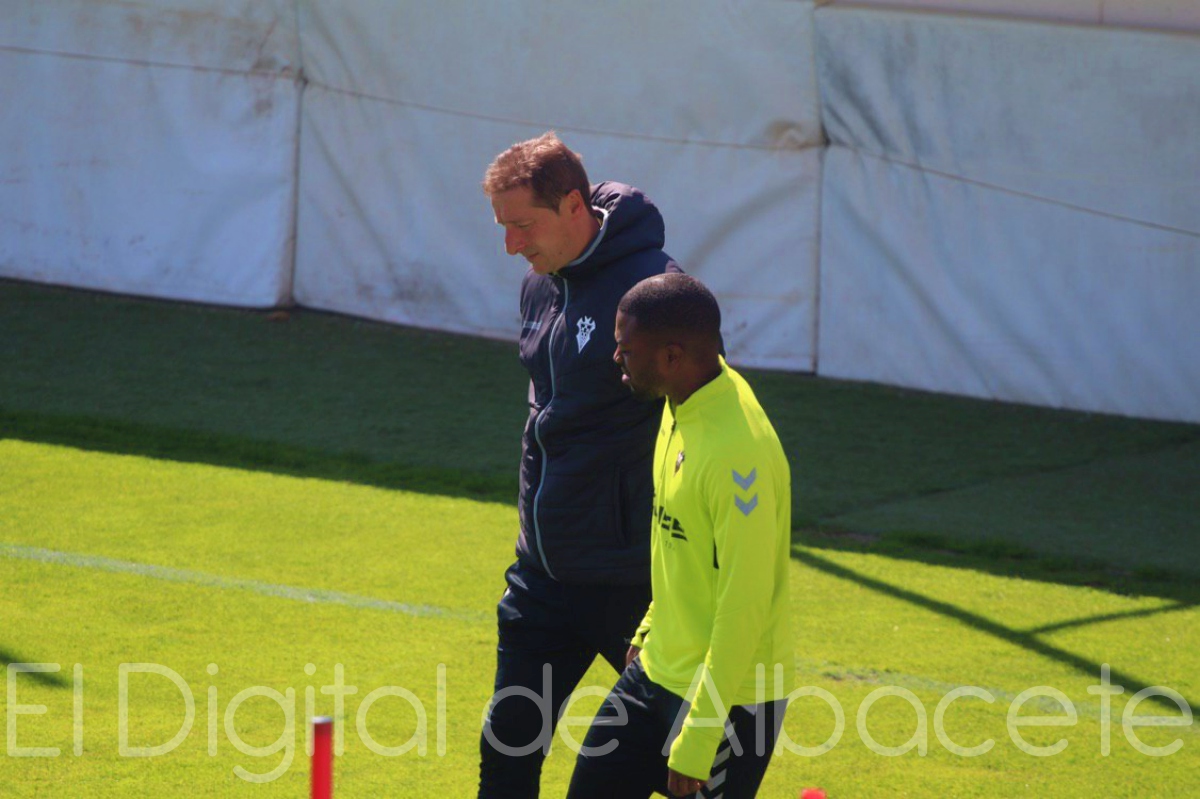 En la sesión de este jueves hubo una gran novedad como el regreso de Álvaro Tejero al grupo. El lateral madrileño se ausentaba en el día de ayer con permiso del Club y esta mañana reaparecía con total normalidad en la actualidad albacetista. Apunta a Lugo como también lo hace el pichichi del Alba Jérémie Bela. El francés parece recuperado totalmente de su esguince de rodilla y parece que podrá ser de la partida en el Anxo Carro.