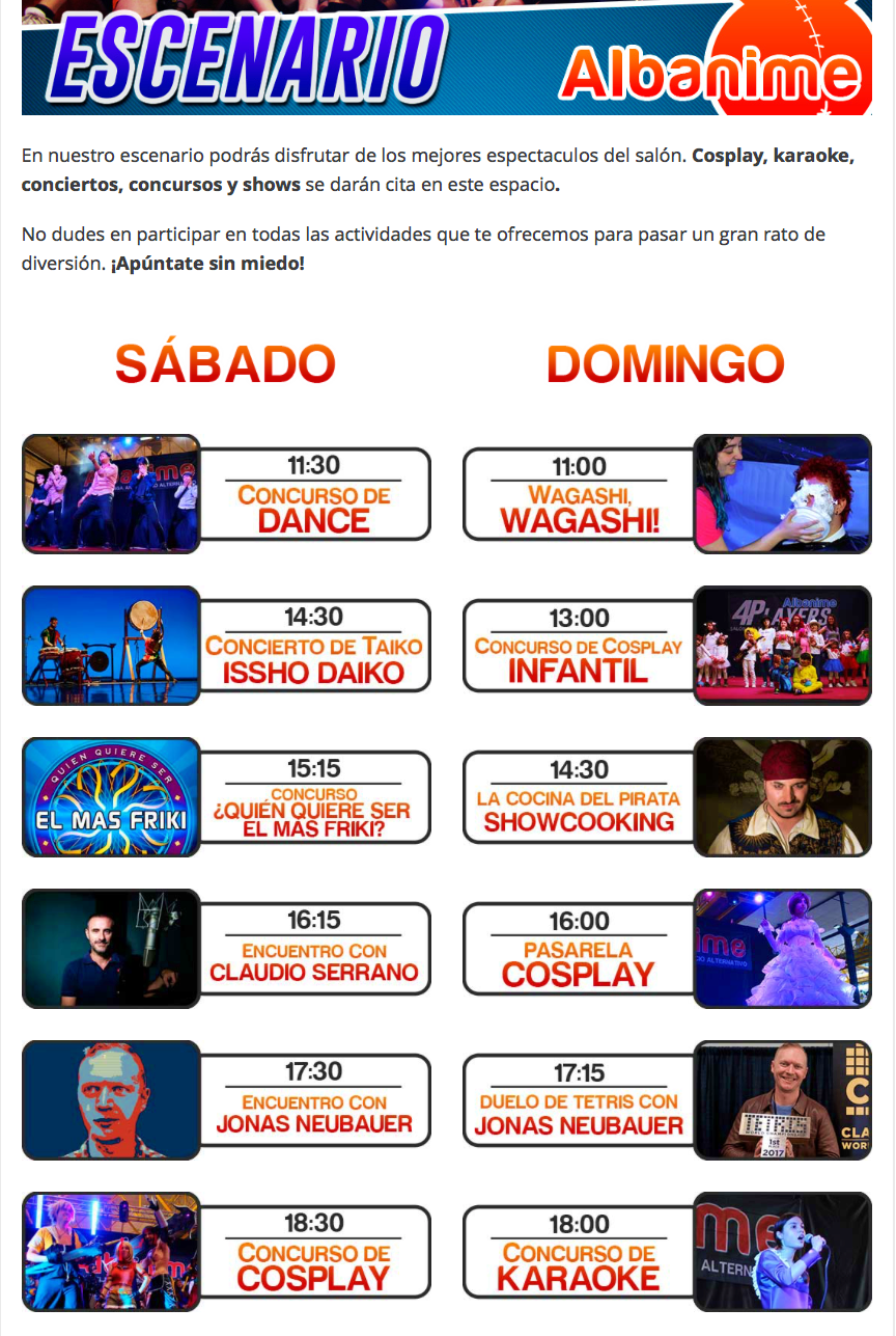 Toda la información sobre las actividades, horarios y entradas estará disponible en la página web www.albanime.com.