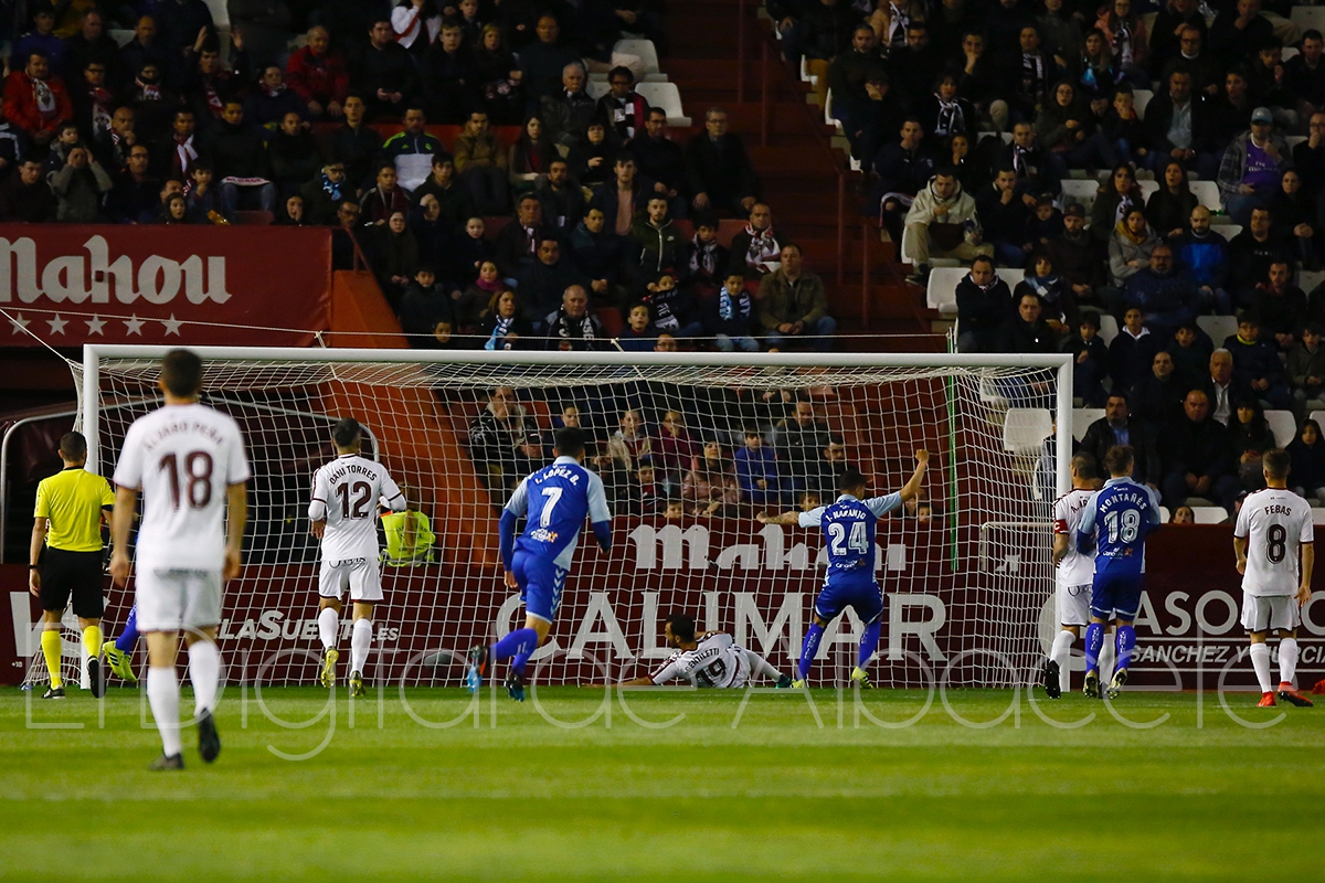 El Albacete Balompié pudo poner las tablas en el marcador en el minuto 15 tras una doble ocasión después de un saque de esquina, pero primer Gentiletti vio como un defensa sacaba su remate casi sobre la línea de gol y el remate posterior de Arroyo salió por encima del larguero.