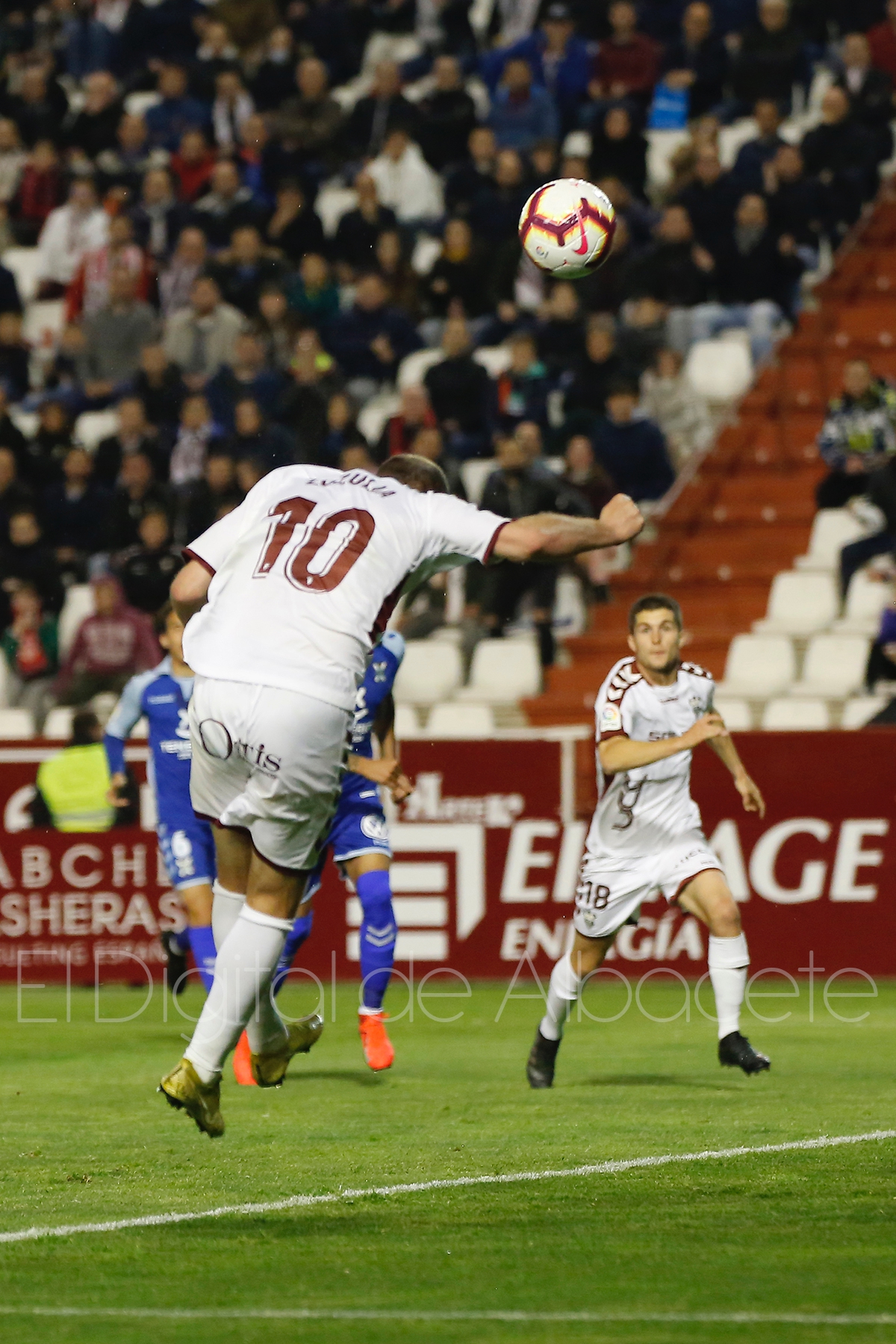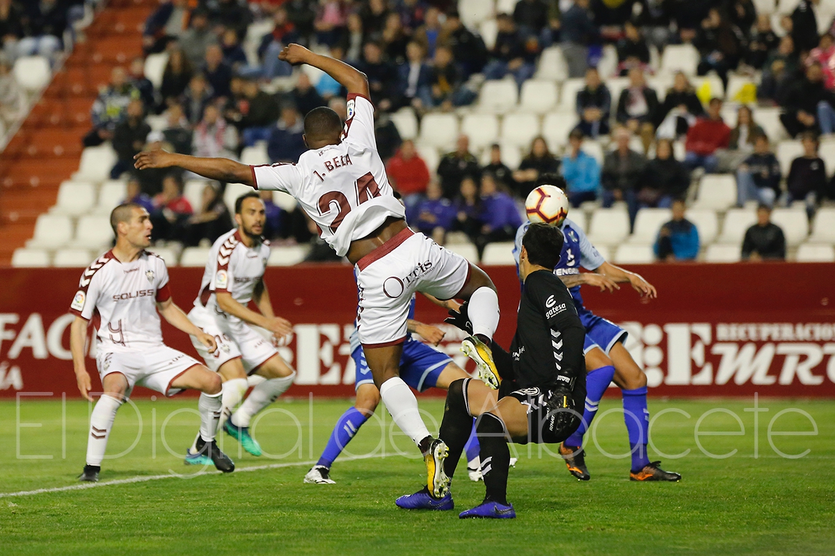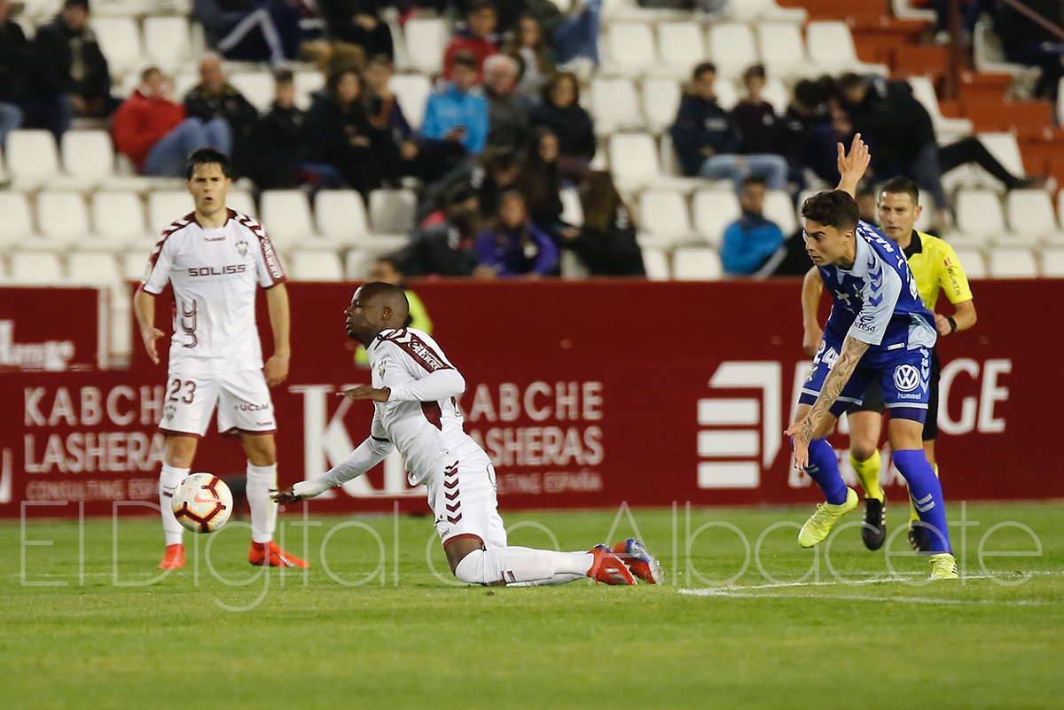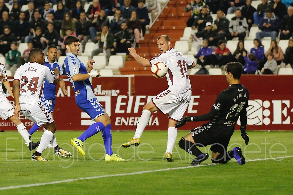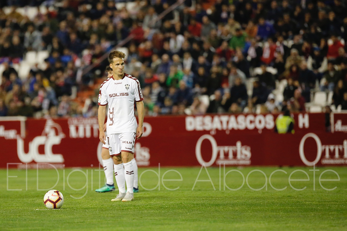 Malbasic puso el corazón en un puño a todo el Carlos Belmonte a falta de 10 minutos para llegar al final con un centro chut desde banda diestra que se fue envenenado conforme se acercaba al marco de Tomeu Nadal y que de no haber sido porque se estrelló en el travesaño, habría subido al marcador y habría supuesto un mazazo para la familia albacetista.