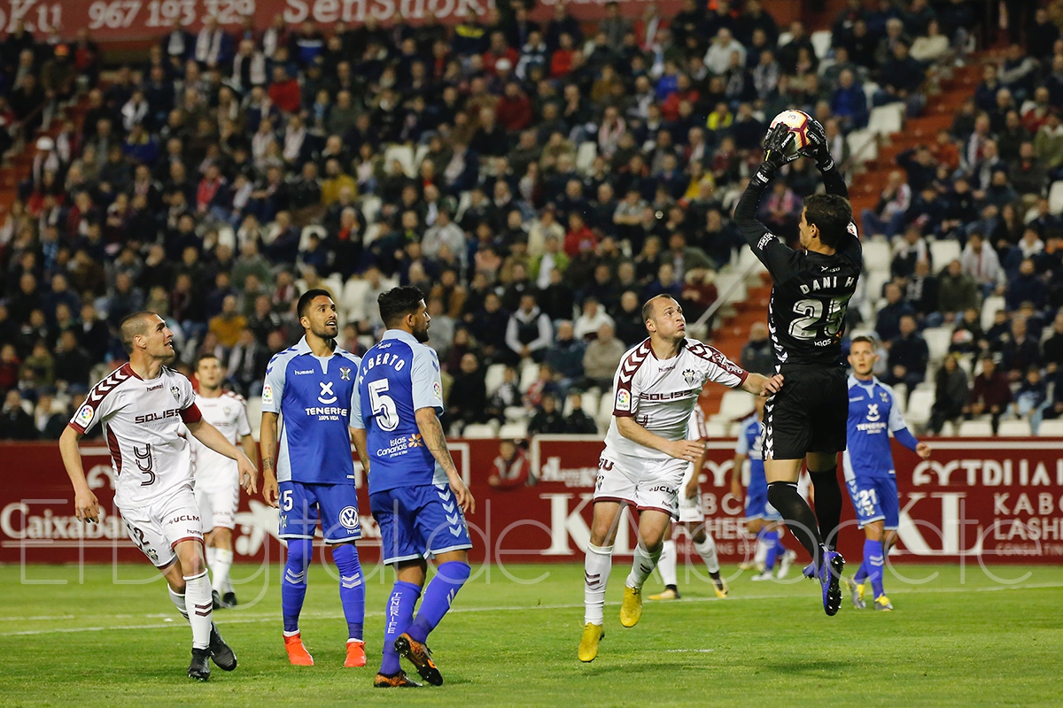 El balón seguía siendo del Albacete Balompié y las aproximaciones al área de los de la isla llegaban con bastante frecuencia, si bien es cierto que el Tenerife solventaba muy bien en los últimos metros y evitaba que Dani Hernández tuviera que emplearse a fondo.