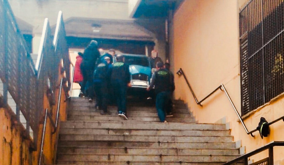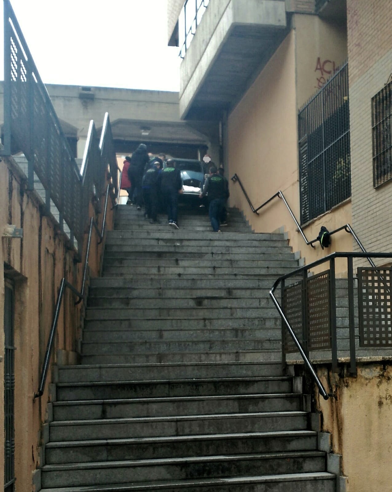 Según ha podido saber El Digital de Albacete, en la mañana de este sábado un hombre conducía su coche, un 2 caballos, por la Plaza de la Mancha, intentando abandonar ésta por una de las escalinatas que comunican Villacerrada con la calle Albarderos. En ese momento, y cuando el frontal de vehículo ya se encontraba iniciando la bajada por las escaleras, el conductor se percató del error, momento en el que intentó sostener como podía un coche que amenazaba con iniciar su recorrido escaleras abajo dirección calle Albarderos.