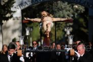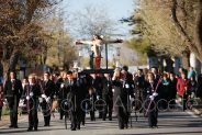 El atardecer dejaba imágenes espectaculares, acompañando durante su traslado a la parroquia del Buen Pastor al Santísimo Cristo de las Misericordias, conocido como Cristo del Cementerio. Una solemne y austera procesión que se ha convertido en toda una tradición en Albacete.