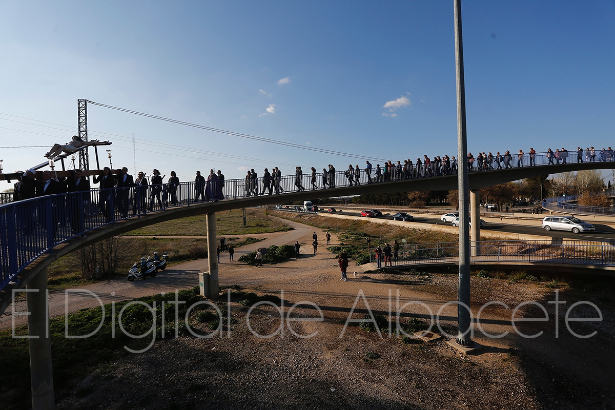 Acompañado por la Banda de Cornetas y Tambores Virgen de los Llanos, el Cristo de las Misericordias dejaba la Capilla del Cementerio Municipal, cruzando las Pasarelas del Cementerio, pasando por las calles Letur, Toledo, Valladolid, Ferrocarril, Parque del Ferrocarril, Fdco. García Lorca, Carmen Ibáñez, José Isbert, Zurbarán hasta llegar a la parroquia del Buen pastor, templo que acogerá la imagen durante los días de la Semana Santa.