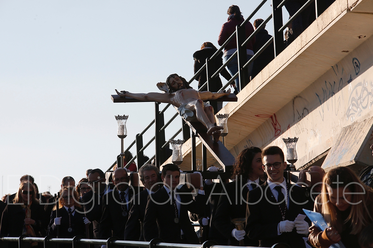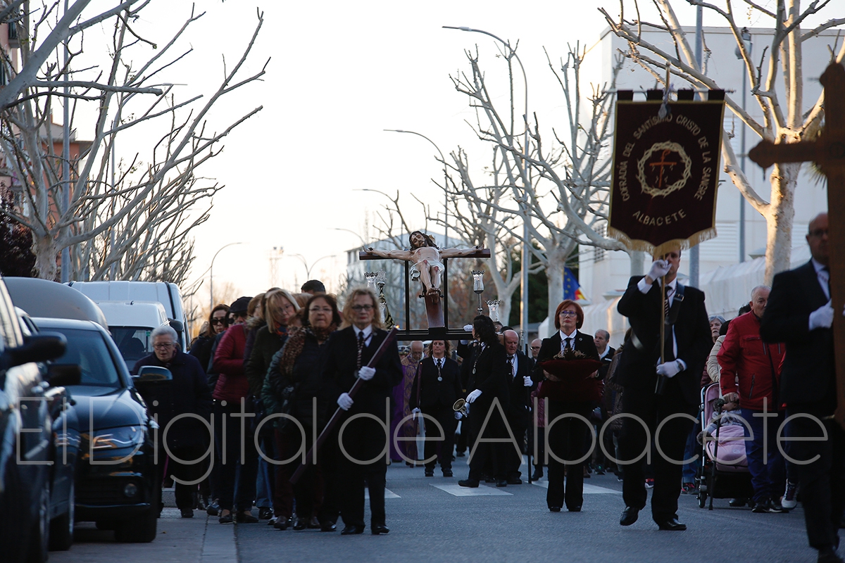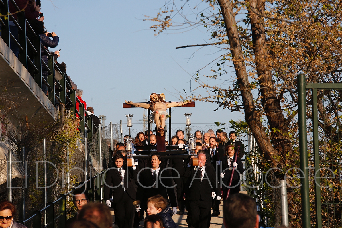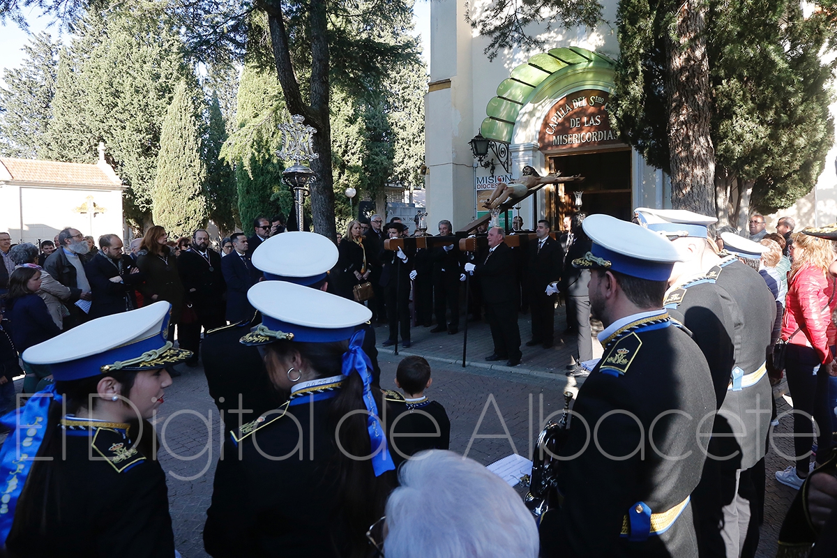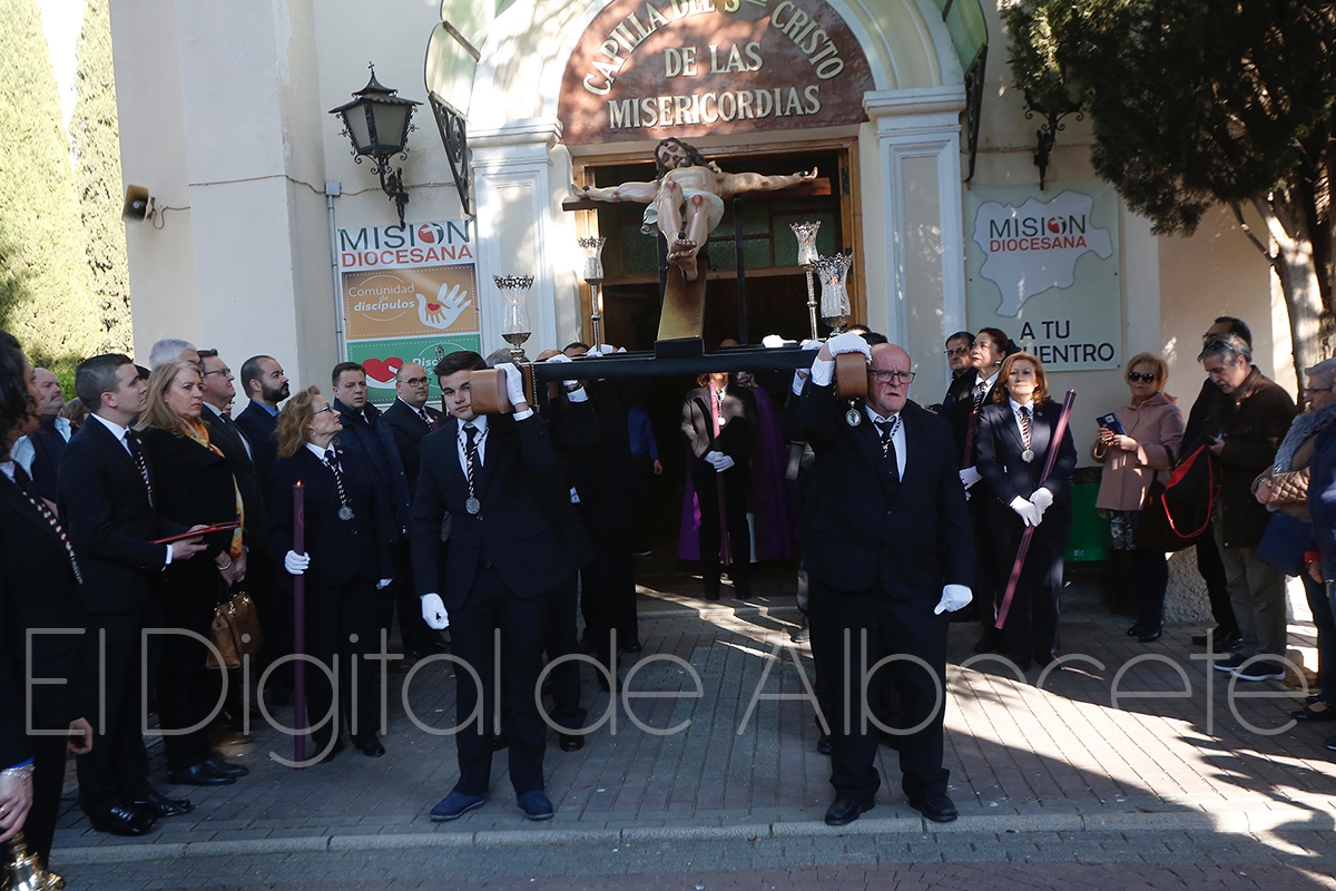Acompañado por la Banda de Cornetas y Tambores Virgen de los Llanos, el Cristo de las Misericordias dejaba la Capilla del Cementerio Municipal, cruzando las Pasarelas del Cementerio, pasando por las calles Letur, Toledo, Valladolid, Ferrocarril, Parque del Ferrocarril, Fdco. García Lorca, Carmen Ibáñez, José Isbert, Zurbarán hasta llegar a la parroquia del Buen pastor, templo que acogerá la imagen durante los días de la Semana Santa.