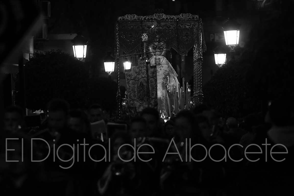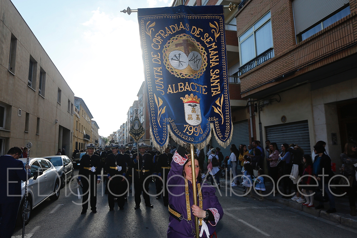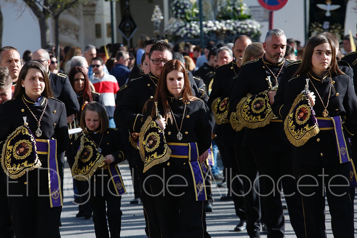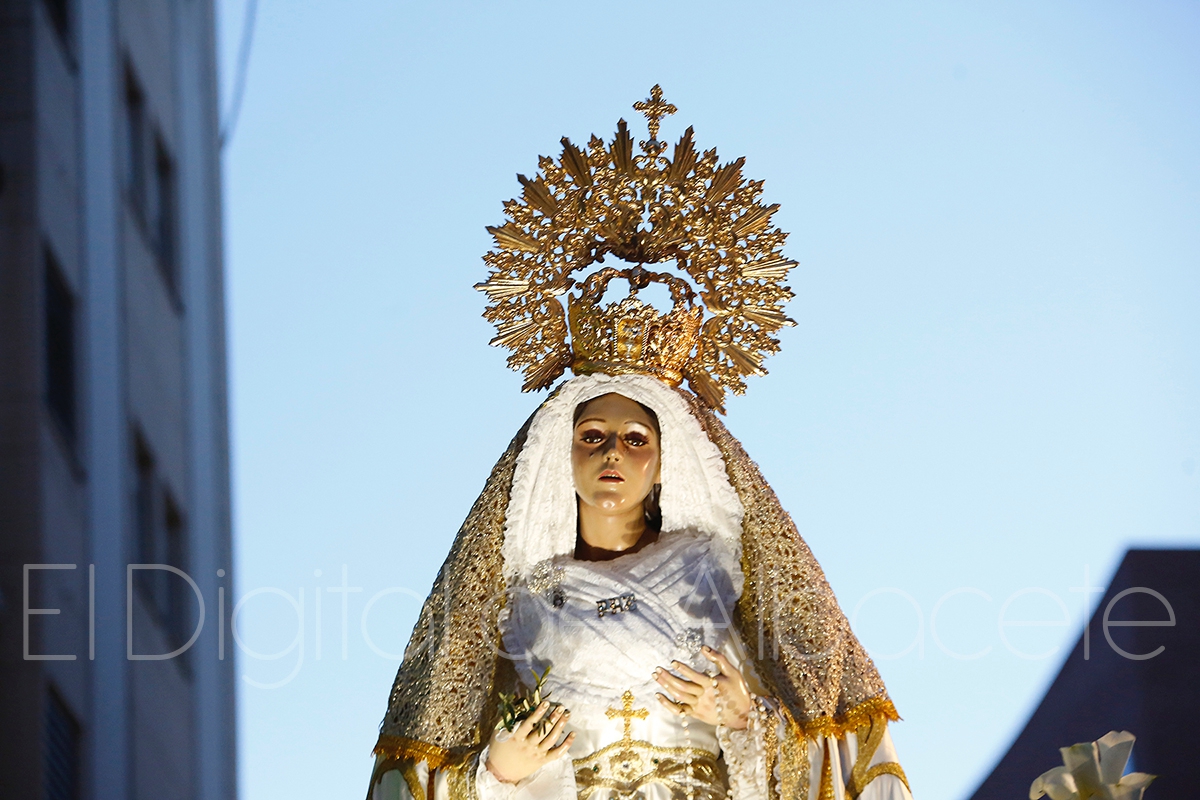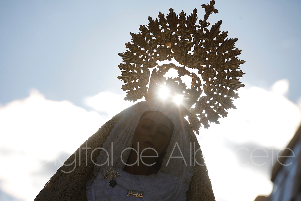Tras el discípulo, procesionaba María Santísima de La Paz, una de las pocas imágenes de la Semana Santa de Albacete que es portada a costal bajo el trono pero que este domingo ante la falta de costaleros ha tenido que ser portada a hombros con miembros de varias cofradías. Esta imagen pertenece a la Cofradía de Santa María Magdalena, fundada en 1987 por un grupo de mujeres.
