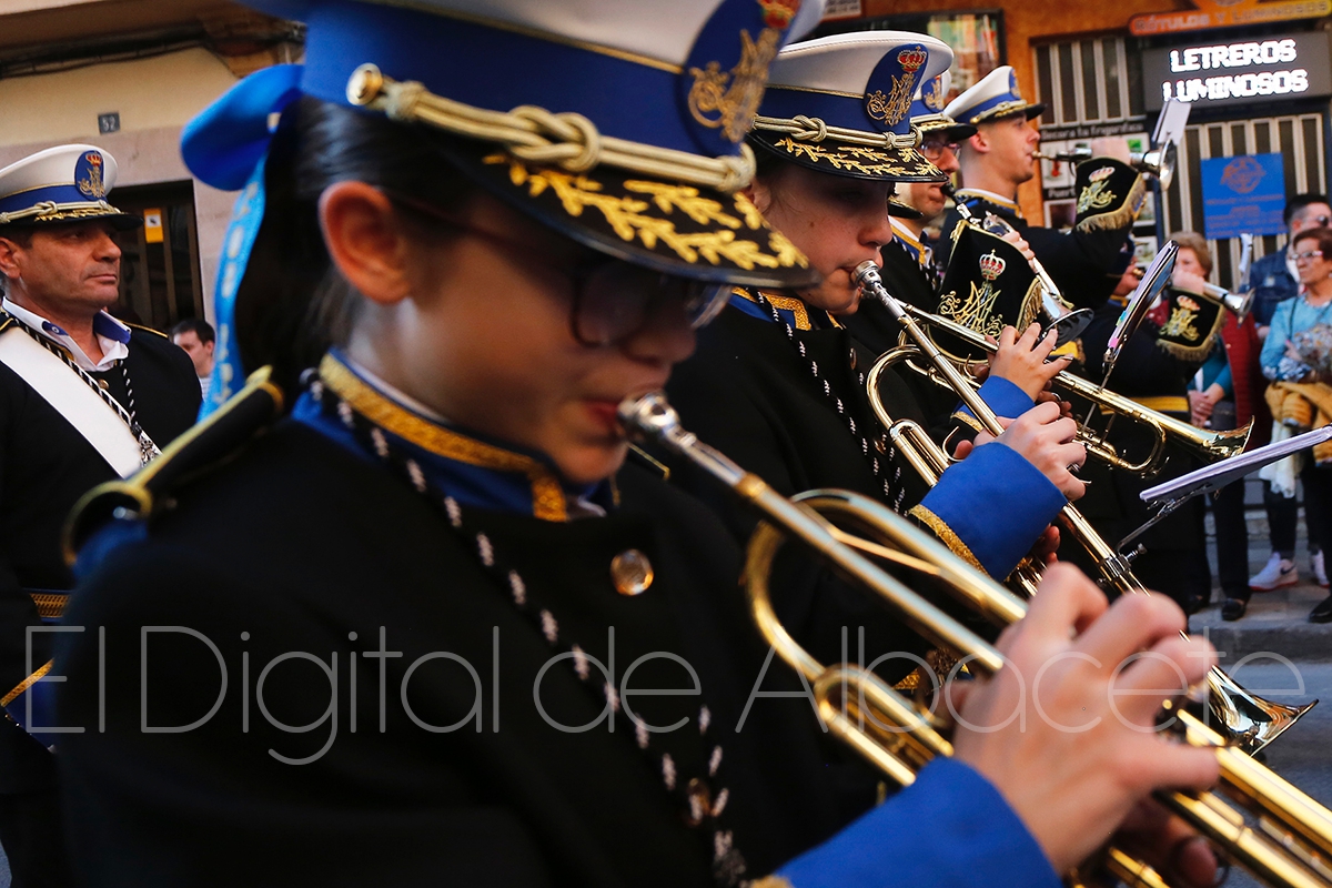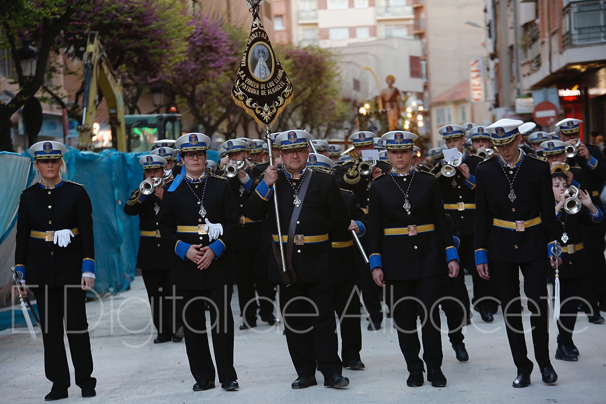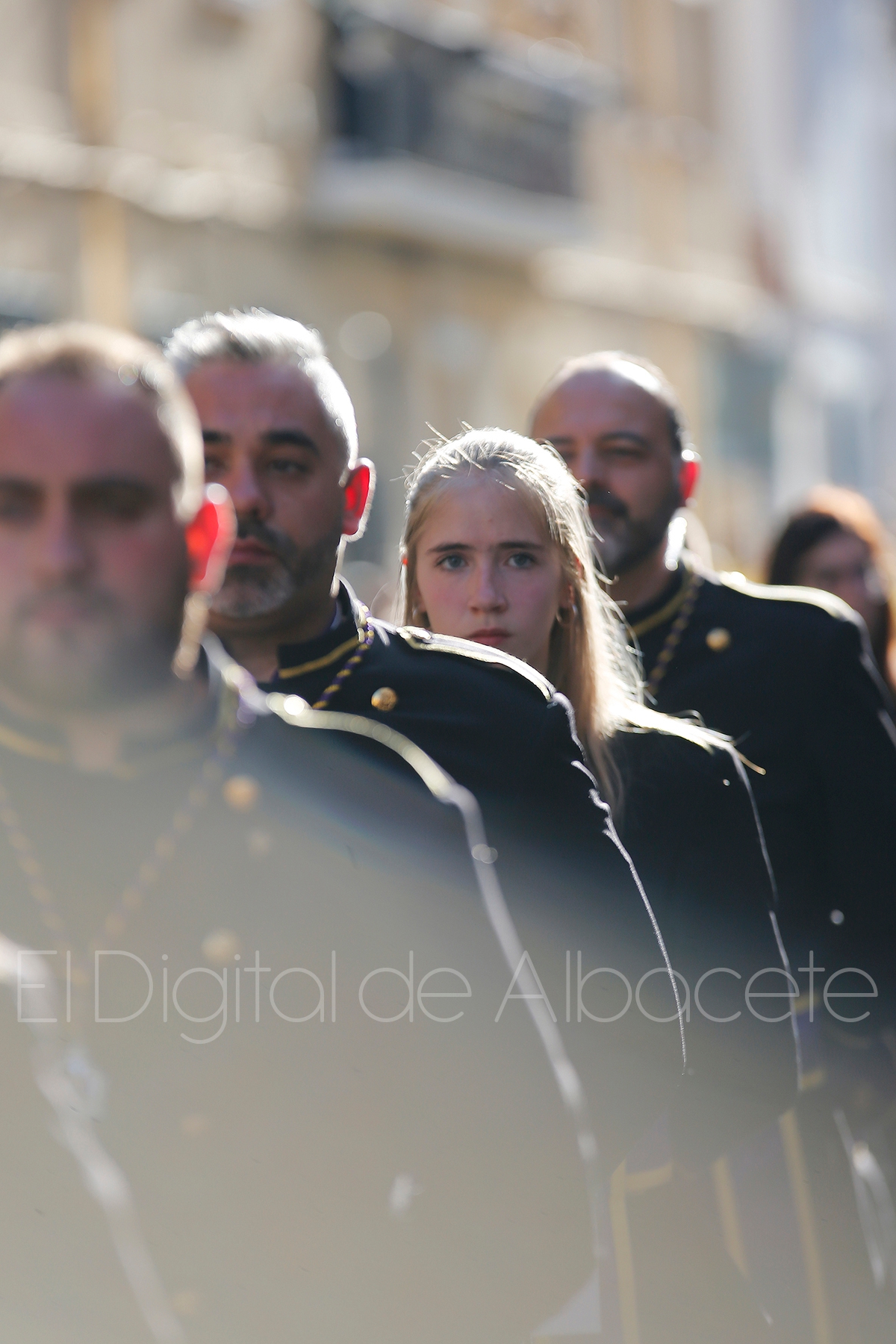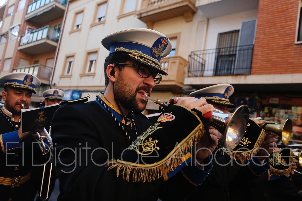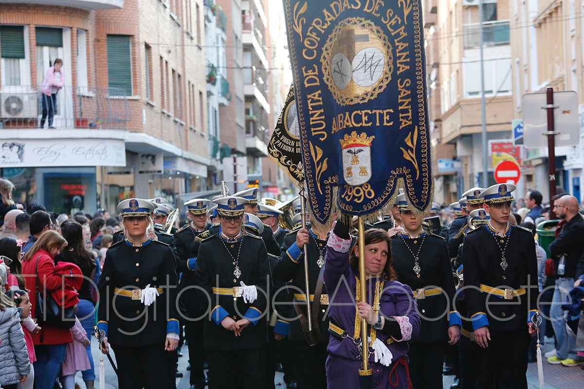Tras el discípulo, procesionaba María Santísima de La Paz, una de las pocas imágenes de la Semana Santa de Albacete que es portada a costal bajo el trono pero que este domingo ante la falta de costaleros ha tenido que ser portada a hombros con miembros de varias cofradías. Esta imagen pertenece a la Cofradía de Santa María Magdalena, fundada en 1987 por un grupo de mujeres.