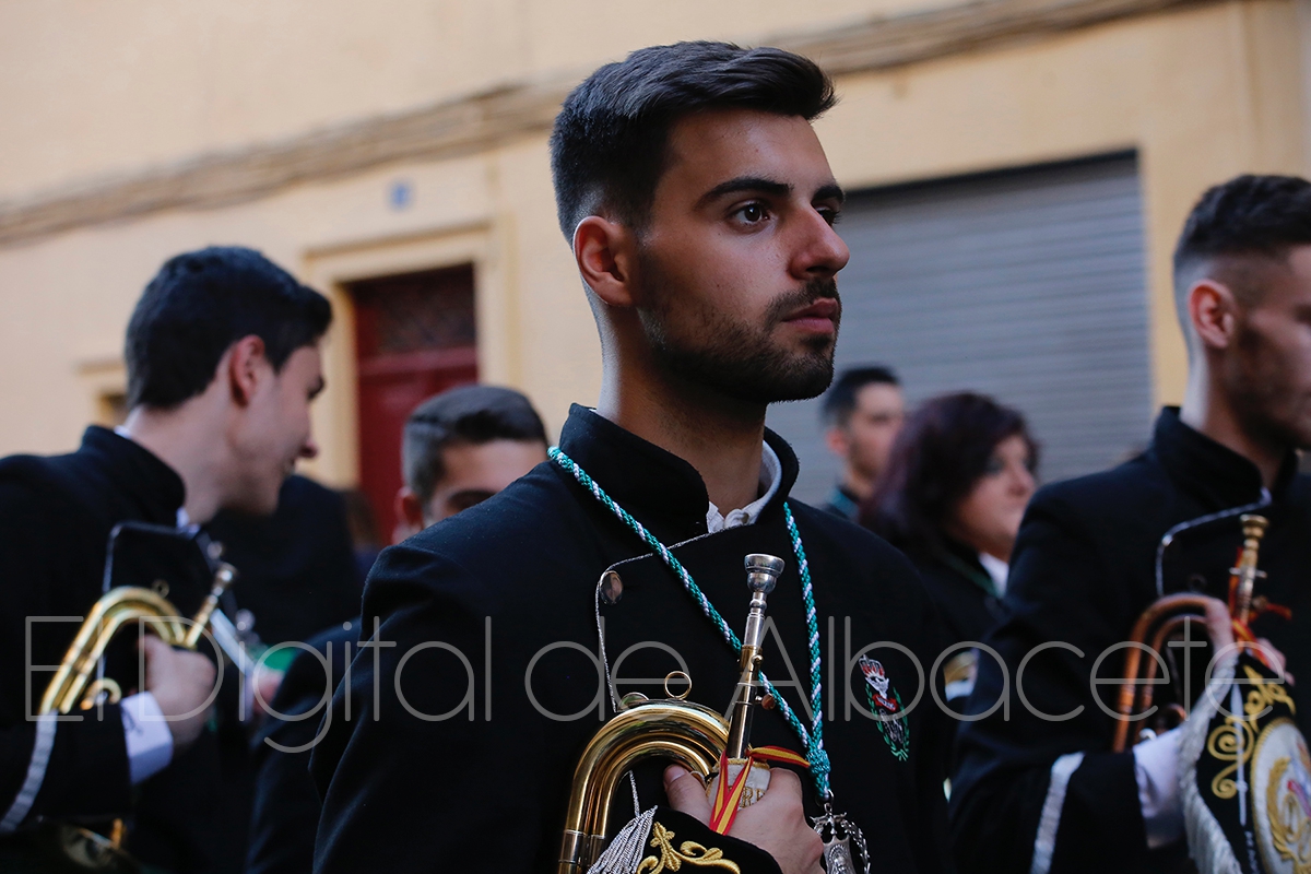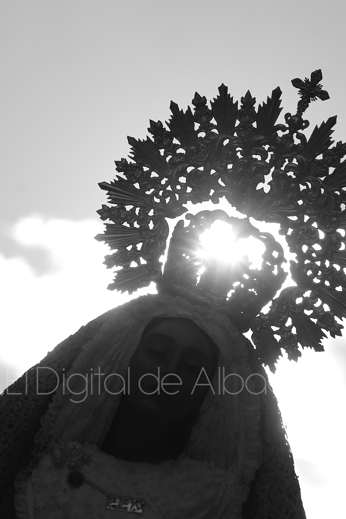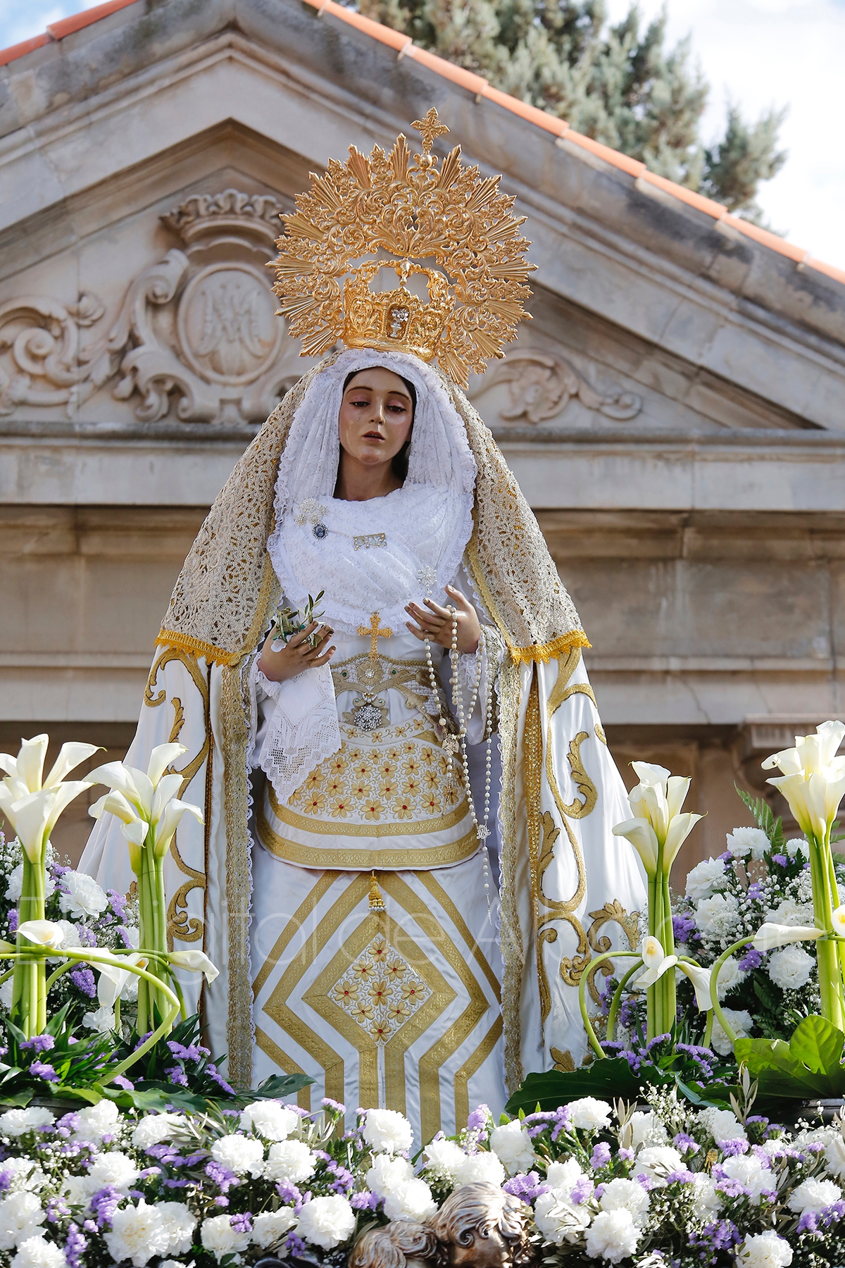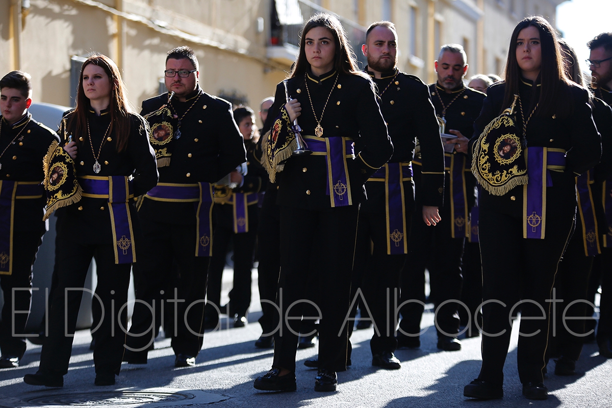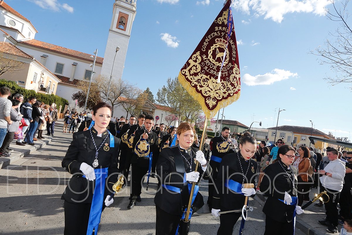 Tras el discípulo, procesionaba María Santísima de La Paz, una de las pocas imágenes de la Semana Santa de Albacete que es portada a costal bajo el trono pero que este domingo ante la falta de costaleros ha tenido que ser portada a hombros con miembros de varias cofradías. Esta imagen pertenece a la Cofradía de Santa María Magdalena, fundada en 1987 por un grupo de mujeres.
