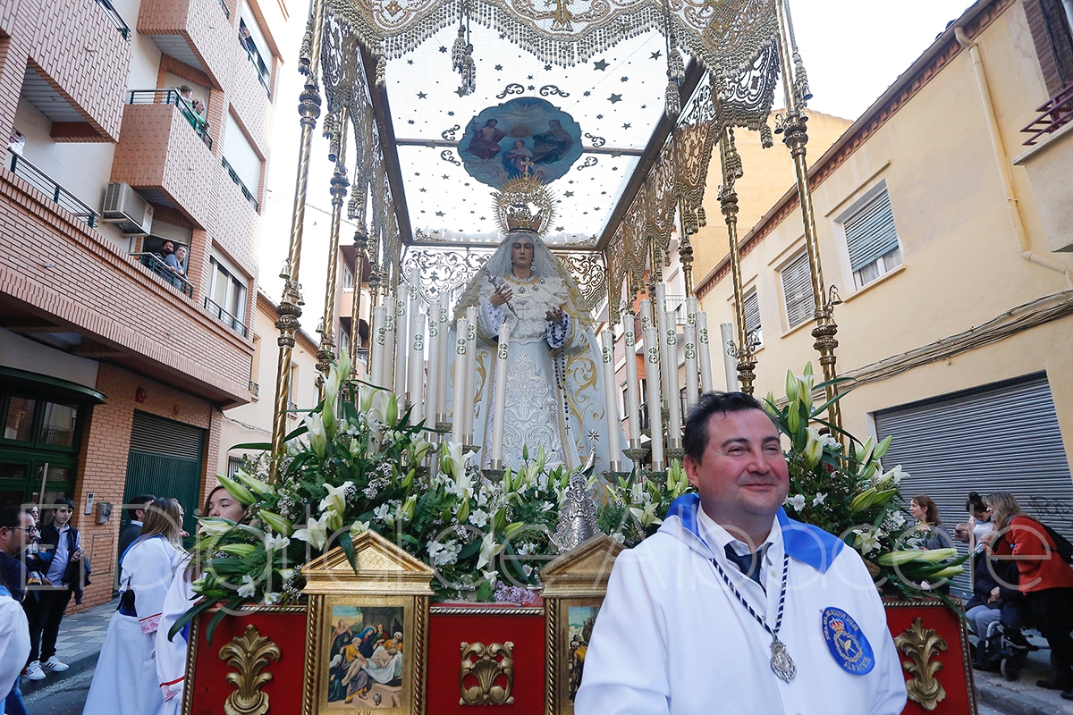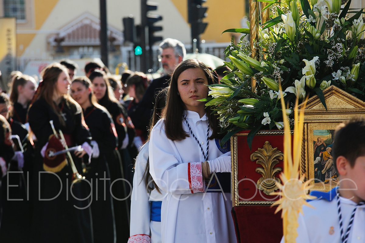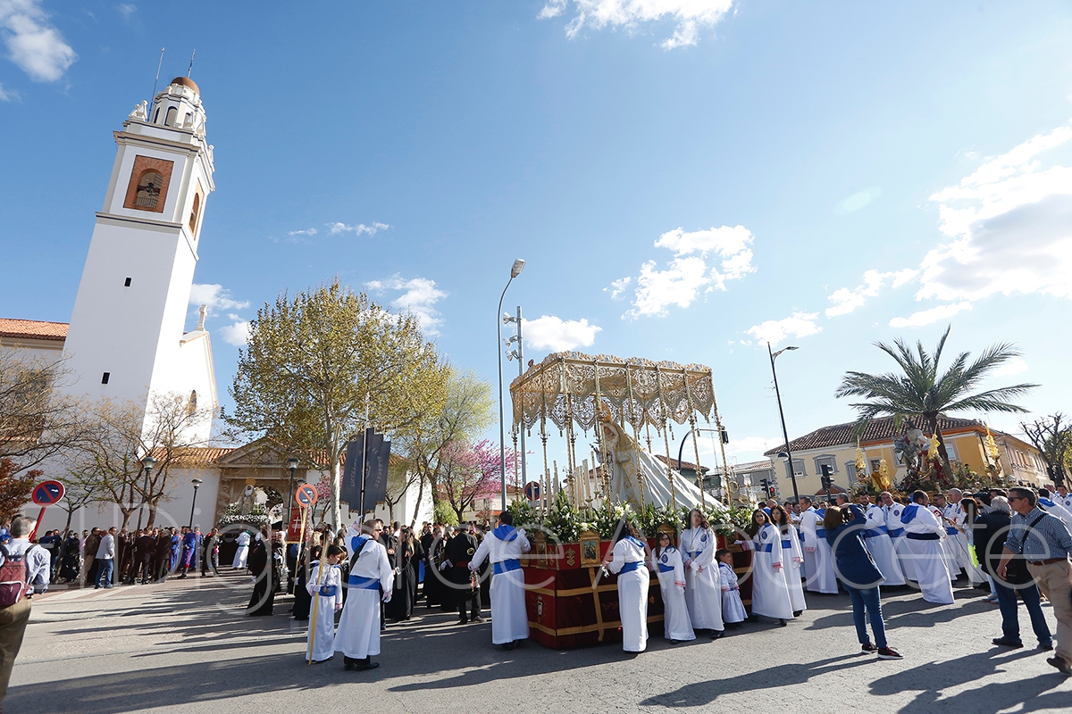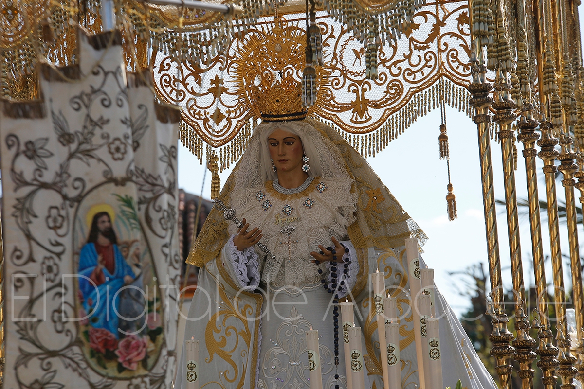 Cerrando el desfile procesional, el paso de la Santísima Virgen del Amparo, seguido de la imagen protagonista de esta ‘Procesión de las Palmas’, la popularmente conocida como “la Borriquilla”.