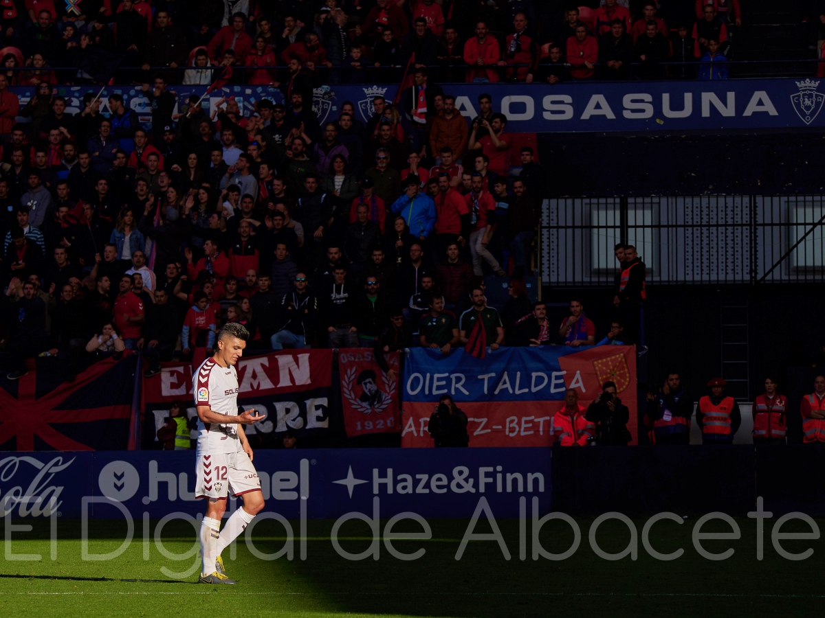 La presión de Osasuna superado el minuto 40 seguía siendo muy alta y no dejaba pensar a un Albacete Balompié que cada vez que el balón caía en los pies de alguno de sus jugadores, de manera inmediata había mínimo dos jugadores rojillos sobre él impidiendo cualquier elaboración de juego en ataque por parte albacetista y maniatando a un equipo que sufrió lo que no está en los escritos durante la primera mitad para que el partido llegara con el cero a cero inicial al tiempo de descanso. Para el Alba, lo mejor y sin género de duda alguno, estaba siendo el resultado después del acoso y casi derribo al que fue sometido durante la primera mitad en El Sadar.