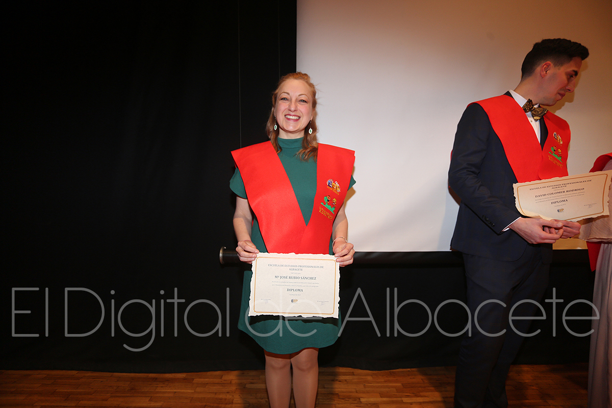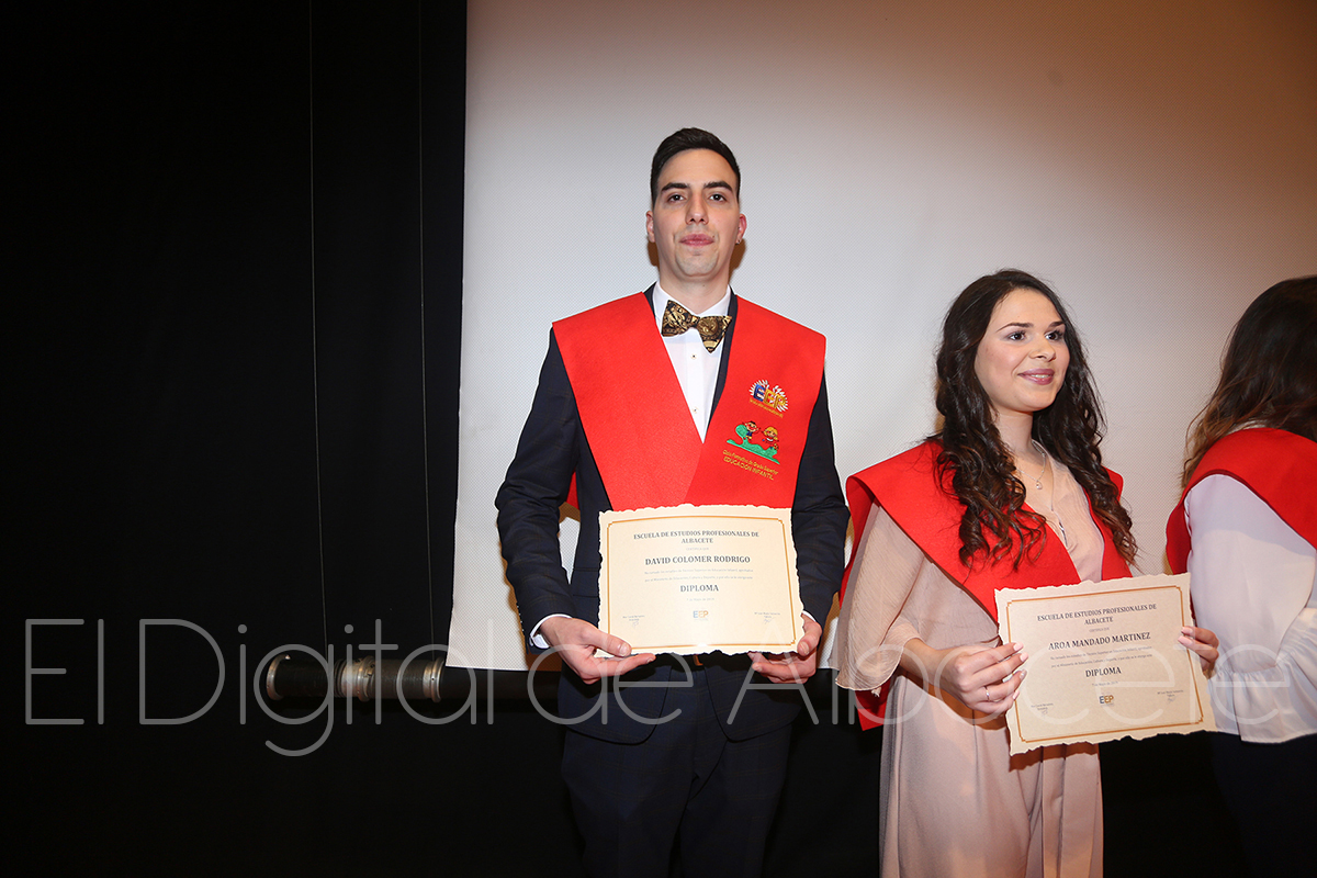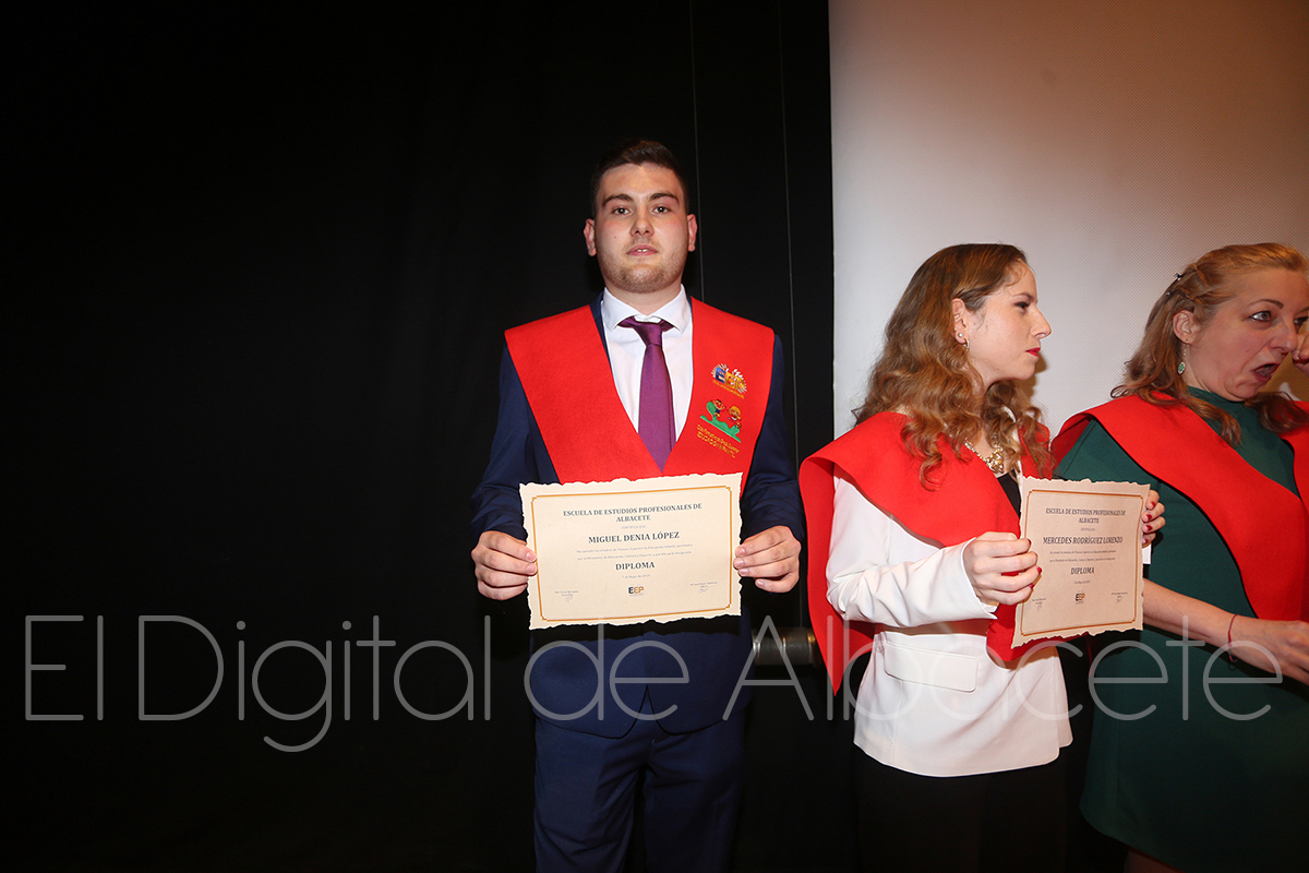 Más de una treintena de estudiantes de la Escuela de Estudios Profesionales de Albacete se graduaban este mates en el Auditorio Municipal. Ilusionados por el fin de su etapa académica, y por el inminente inicio de sus vidas laborales, los alumnos de hasta seis ciclos pertenecientes a este centro formativo agradecían a los profesionales su dedicación, sintiéndose ya preparados para trasladar a la práctica todo lo aprendido en los últimos meses.