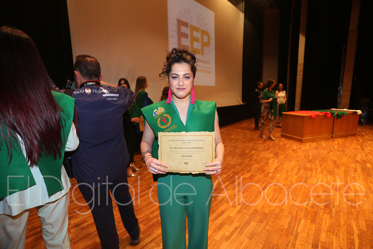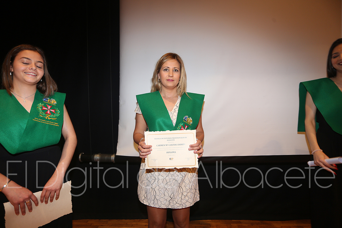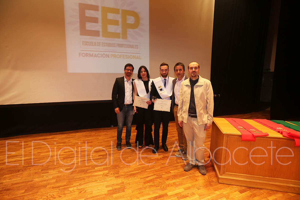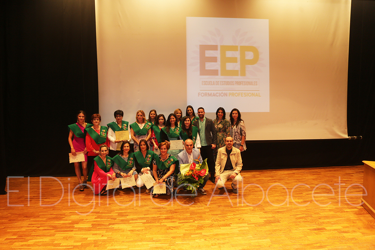 Más de una treintena de estudiantes de la Escuela de Estudios Profesionales de Albacete se graduaban este mates en el Auditorio Municipal. Ilusionados por el fin de su etapa académica, y por el inminente inicio de sus vidas laborales, los alumnos de hasta seis ciclos pertenecientes a este centro formativo agradecían a los profesionales su dedicación, sintiéndose ya preparados para trasladar a la práctica todo lo aprendido en los últimos meses.