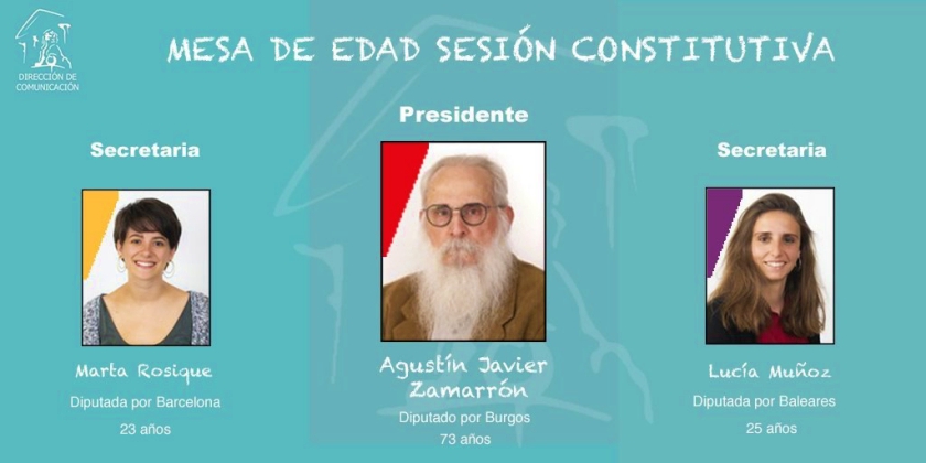 La candidata a presidir el Congreso es la socialista Meritxel Batet, y mientras su proclamación llega, los encargados de arrancar el proceso legislativo son los diputados que componen la Mesa de Edad del Congreso, que difiere en cuanto a número de miembros de la del Senado, siendo tres: el de mayor edad, Javier Zamarrón, con 73 años y representante del PSOE por Burgos, que es ya médico jubilado; la de menor edad, que es la diputada de Esquerra Republicana por Barcelona, Marta Rosique, de 23 años y la representante de Unidas Podemos por Baleares, Lucía Muñoz.