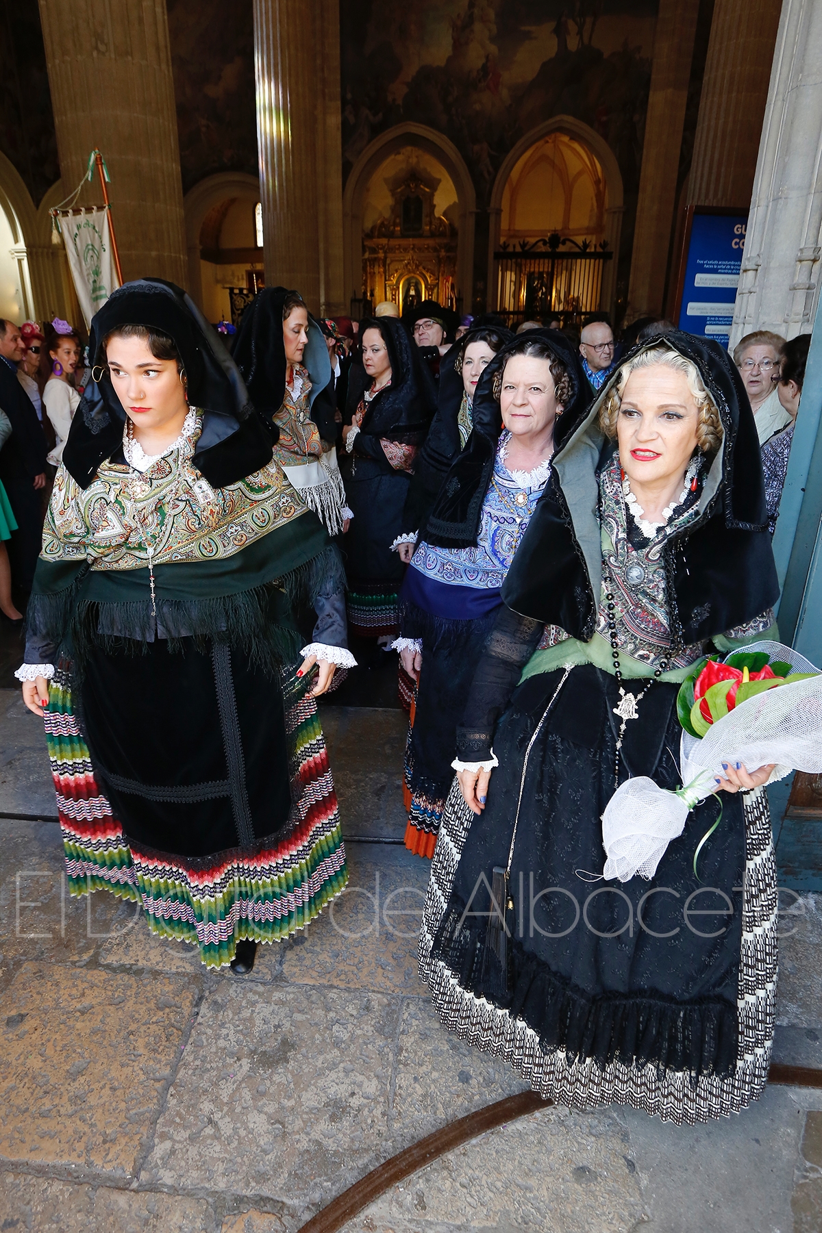 La fe y devoción de los albaceteños han acompañado a la Virgen de los Llanos en su recorrido por el corazón de Albacete. Finalmente, tras pasear por las principales arterias de Albacete, la imagen de nuestra patrona llegaba a la Catedral, donde el acto finalizaba con la ofrenda de flores a la Virgen de los Llanos que este año ha finalizado con las tres parejas de Manchegos de la Feria 2018. Los albaceteños han depositado a los pies de nuestra Patrona su especial ofrenda, mientras fieles y devotos entonaban el Himno de la Coronación interpretado por la Banda Sinfónica Municipal de Albacete.
