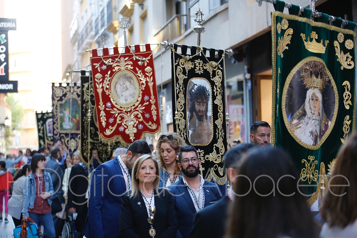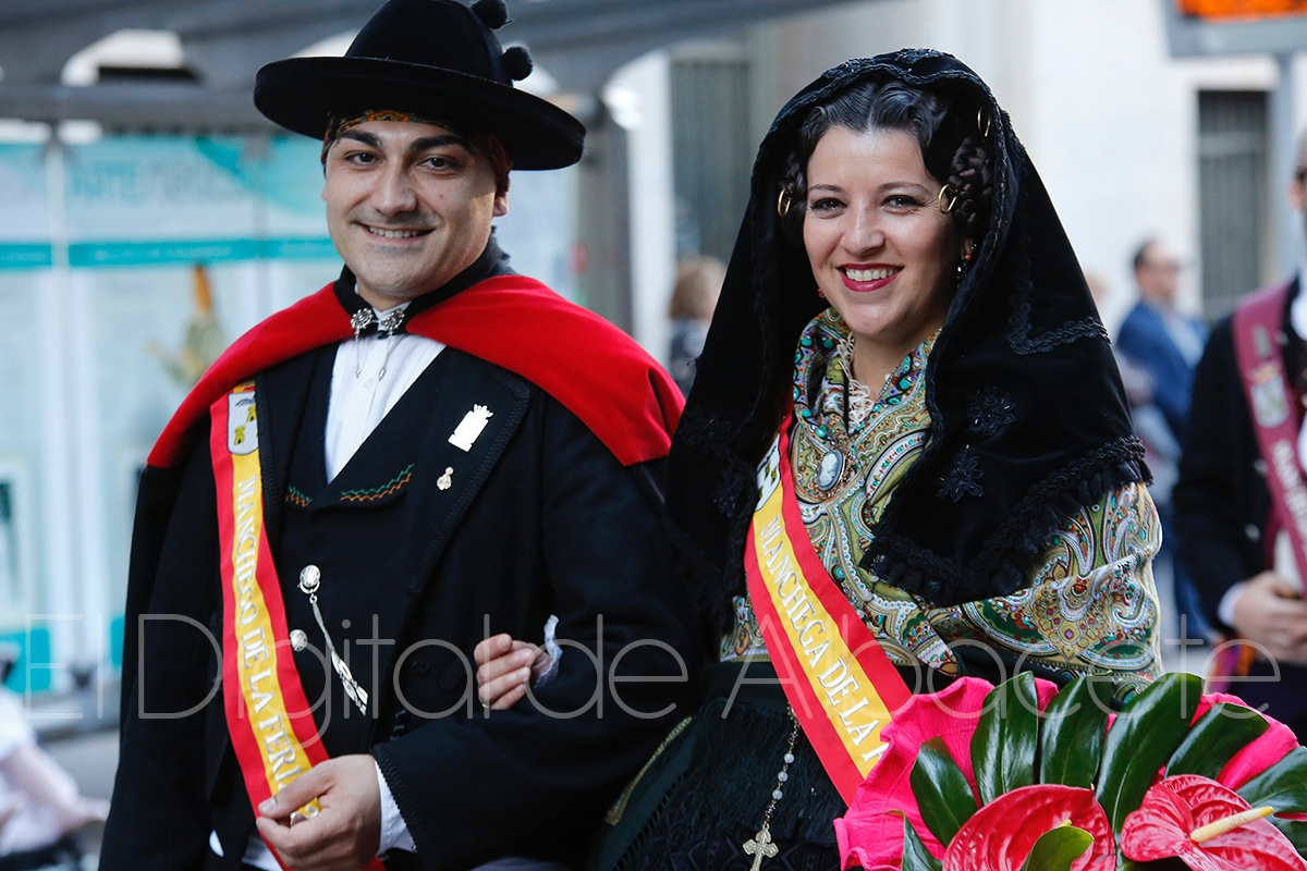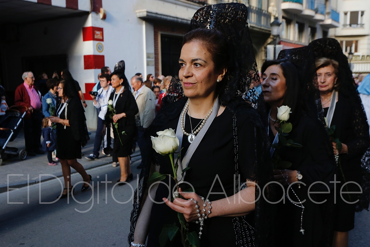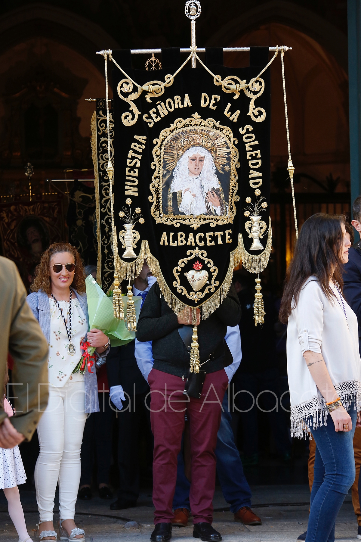 Como gesto de devoción y respeto, muchos de los asistentes han acompañado a la Virgen de los Llanos vistiendo el traje regional, dando colorido a esta procesión. Junto a ellos la Banda de Cornetas y Tambores ‘Virgen de Los Llanos’ y el resto de grupos de folklore -Raíces del Llano, El trillo, Abuela Santa Ana, San Pablo y Magisterio-, asociaciones, estandartes religiosos, manolas y devotos, desde la Catedral, Bajada de San Juan, donde por primera vez se ha instalado una gran alfombra de serrín típica de Elche de la Sierra, San Julián, Cura, Méndez Núñez, Plaza Mayor, calle Mayor, donde por quinto año consecutivo ha tenido lugar una petalada de más de 200 claveles, Marqués de Molins, Altozano, Martínez Villena, Bajada de San Juan a Plaza Virgen de los Llanos.