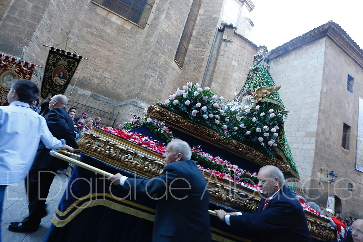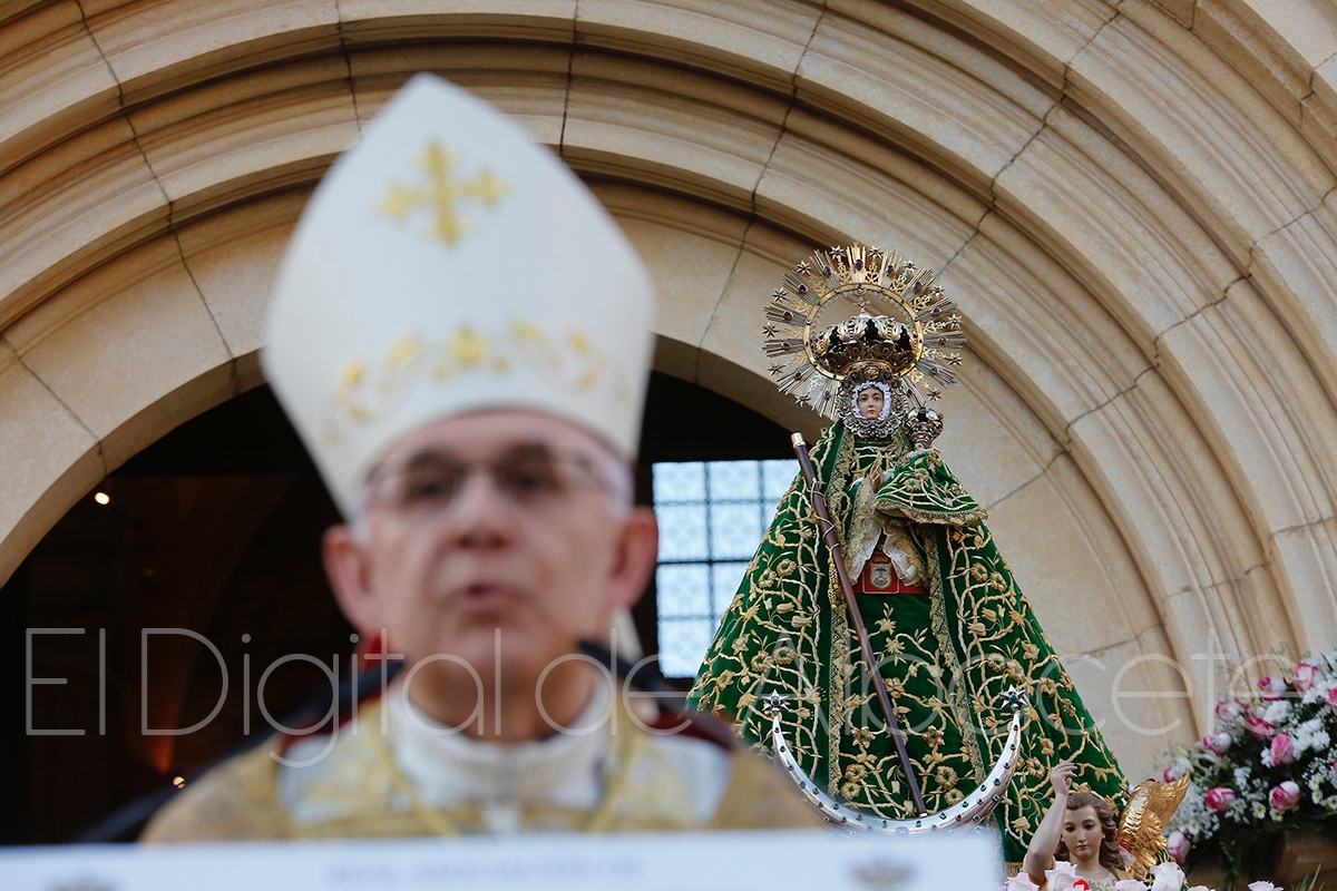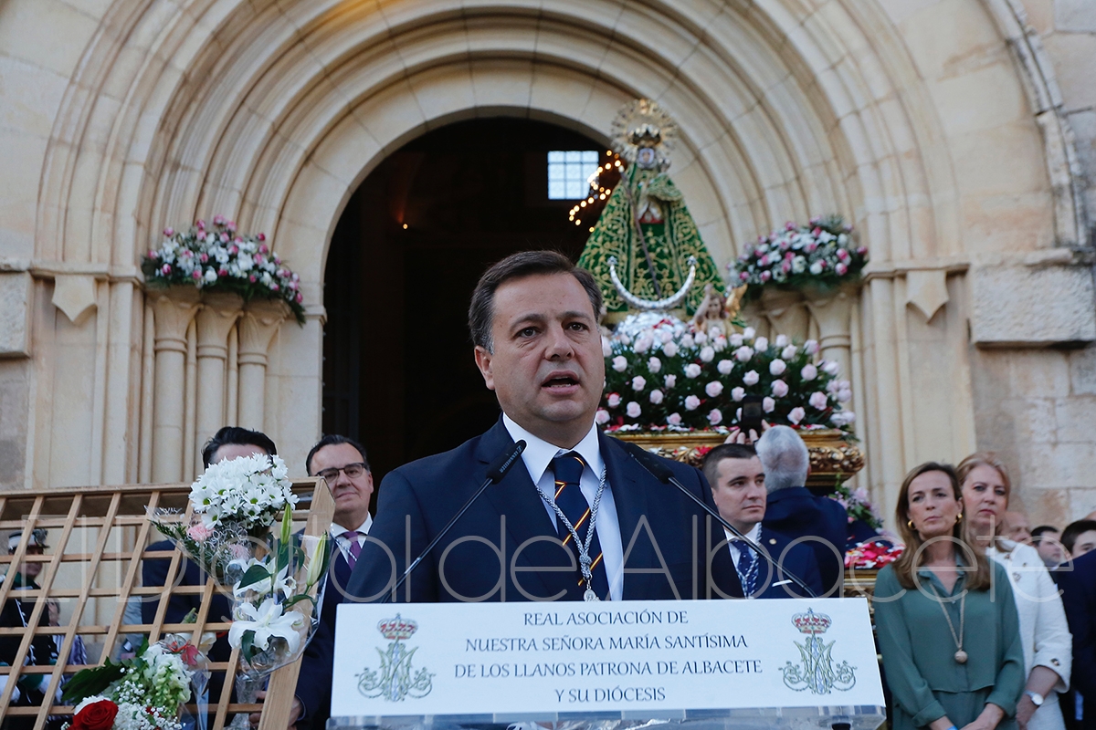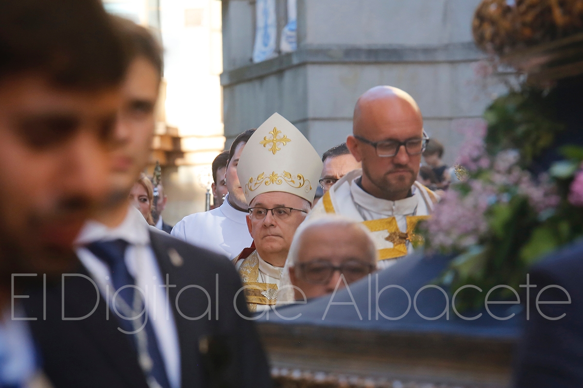 Una procesión muy especial para el obispo de Albacete, Ángel Fernández, gran devoto mariano, que presidía por primera vez este acto organizado por la Real Asociación de Nuestra Señora María Santísima de los Llanos. Además, la patrona tiene el título de Alcaldesa Perpetua de la Ciudad de Albacete, concedido por el consistorio de la capital en el año 1956.