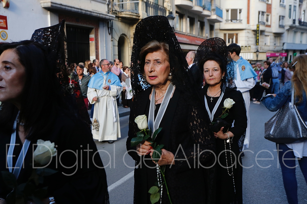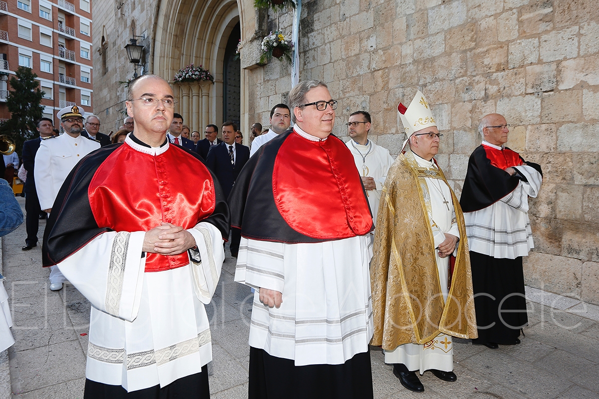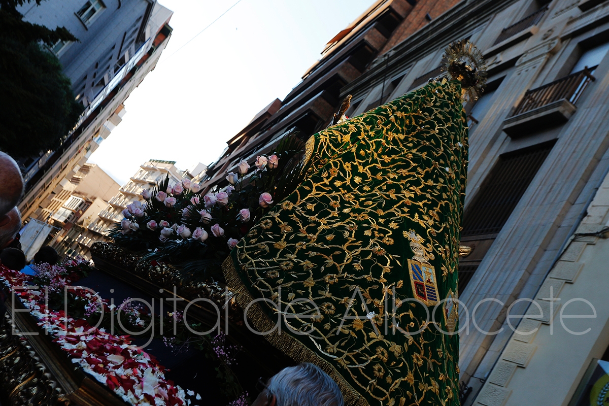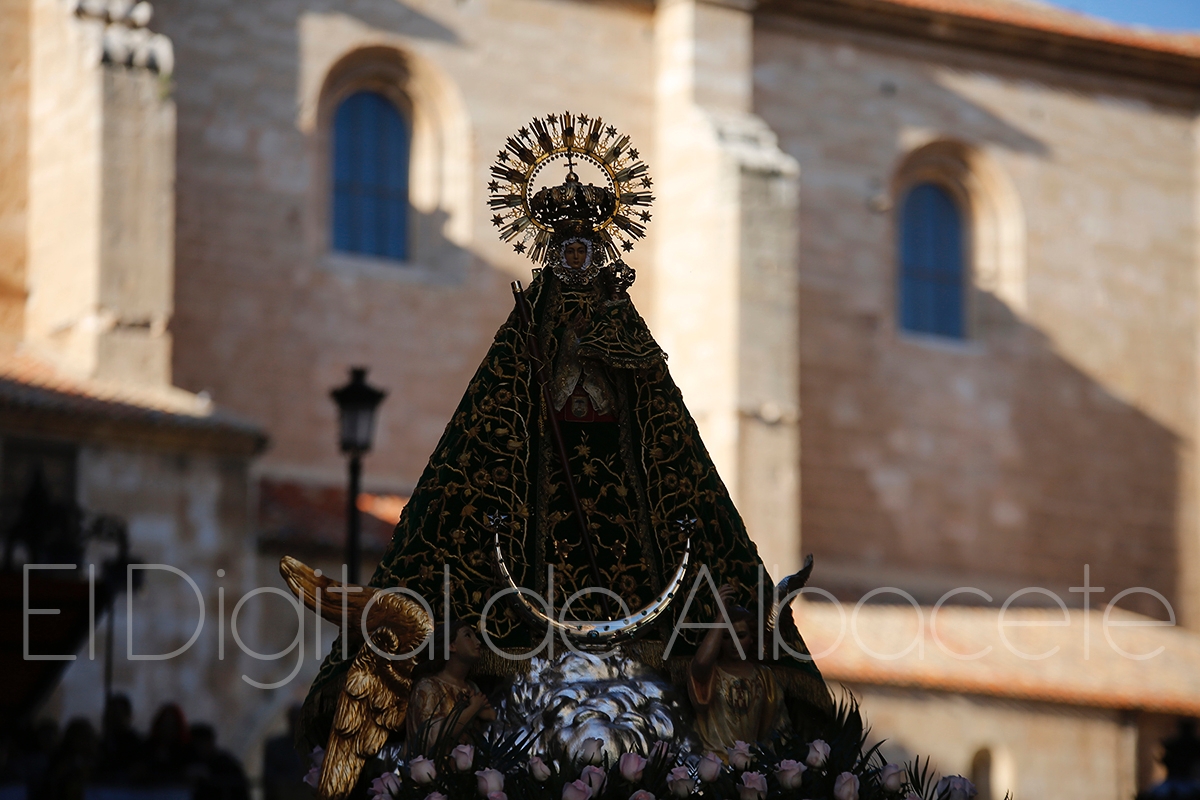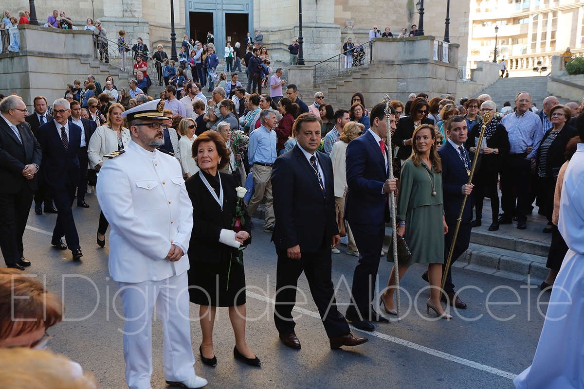Una procesión muy especial para el obispo de Albacete, Ángel Fernández, gran devoto mariano, que presidía por primera vez este acto organizado por la Real Asociación de Nuestra Señora María Santísima de los Llanos. Además, la patrona tiene el título de Alcaldesa Perpetua de la Ciudad de Albacete, concedido por el consistorio de la capital en el año 1956.