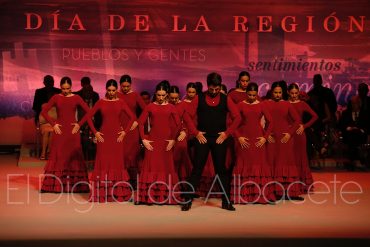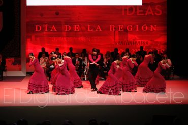 Recuerdo durante el acto, que ha sido trasladado en lengua de signos, para Alfredo Pérez Rubalcaba, recientemente fallecido. Como decíamos al principio de la crónica, el evento del Día de la Región contaba con gran presencia albaceteña, pues el mismo ha sido presentado por la periodista de Albacete, Mariló Leal, siendo amenizado con las actuaciones de la Compañía de Danza ‘Nuevo Amanecer Ángel Martínez’, tamborileros de las localidades albaceteñas de Hellín, Tobarra y Agramón y de los alumnos del conservatorio profesional de música ‘Tomás de Torrejón y Velasco’ de Albacete.