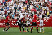 Abdón Prats puso un nudo en la garganta a todo el Albacete Balompié, rematando muy bien con la testa un centro desde la banda derecha por mediación de Salva Sevilla y que de no haber sido por una nueva intervención salvadora de Tomeu Nadal habría besado las mallas del cuadro de Luis Miguel Ramis. Por suerte, todo siguió igual después de la gran intervención de San Tomeu Nadal.