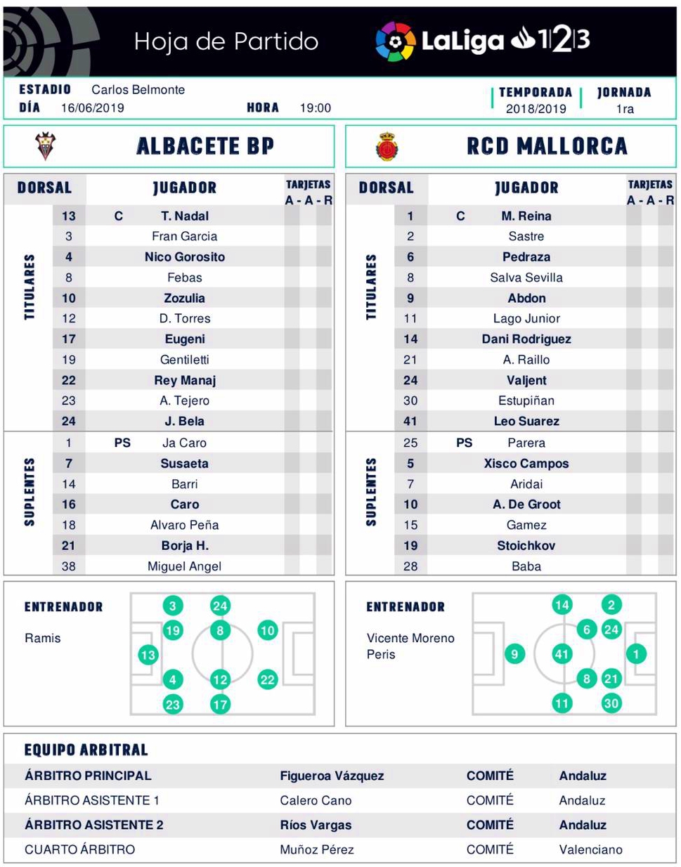 - El Albacete Balompié ha sido apeado de los play offs de ascenso por el Real Mallorca tras el 2-0 de la ida y el 1-0 de la vuelta disputada este domingo en el Carlos Belmonte.
