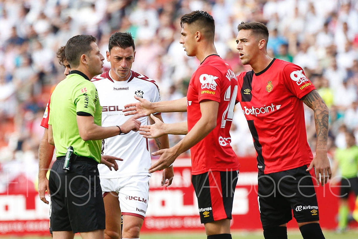 El partido comenzó con mucha intensidad por parte de ambos conjuntos, con el Albacete Balompié intentando hacerse con el control del balón y con un Mallorca que salió respondón y que por medio de Leo Suárez llevó la polémica al césped del Carlos Belmonte al fingir una agresión de Tomeu Nadal en el minuto 5 de partido. Figueroa Vázquez y sus asistentes hicieron caso omiso al teatro del argentino y no hubo sanción alguna para el cancerbero del Albacete Balompié; tampoco para el atacante del cuadro bermellón.