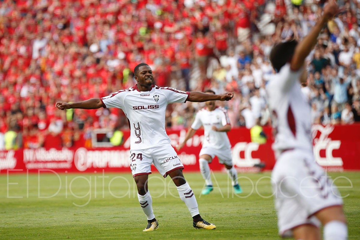 La locura llegó al Carlos Belmonte en el minuto 15 con un auténtico golazo de Jeremi Bela de falta directa, que solventó por fuera la barrera y que se fue envenenando con arsénico marca de la casa para besar las mallas de la portería del Mallorca al mismo tiempo que colocaba al Albacete Balompié a un solo gol de estar en la finalísima del play off peleando con el Deportivo de La Coruña por una plaza en Primera División.