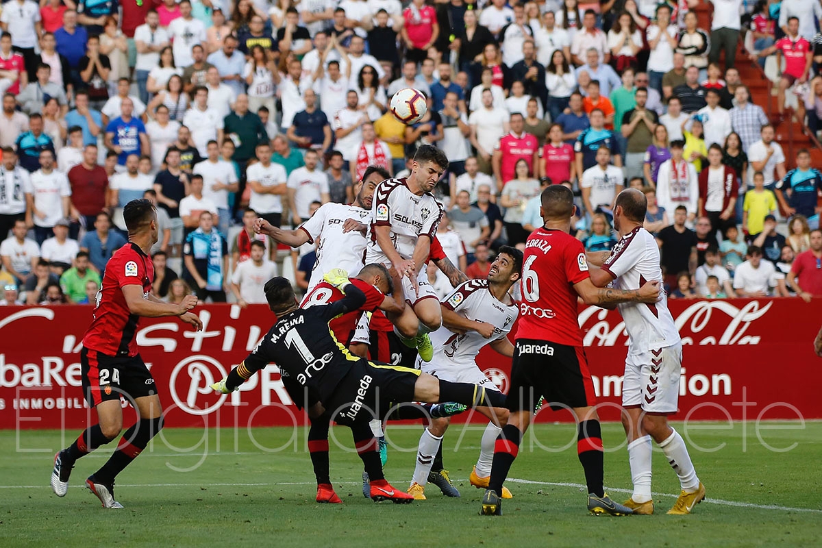 Rei Manaj puso en pie a los 16.603 espectadores que poblaron el graderío del Carlos Belmonte en el minuto 70 tras una internada desde la banda que terminó con un durísimo disparo del albanés que se acabó perdiendo por la línea de fondo a escasos milímetros del poste derecho de la meta defendida por Reina.