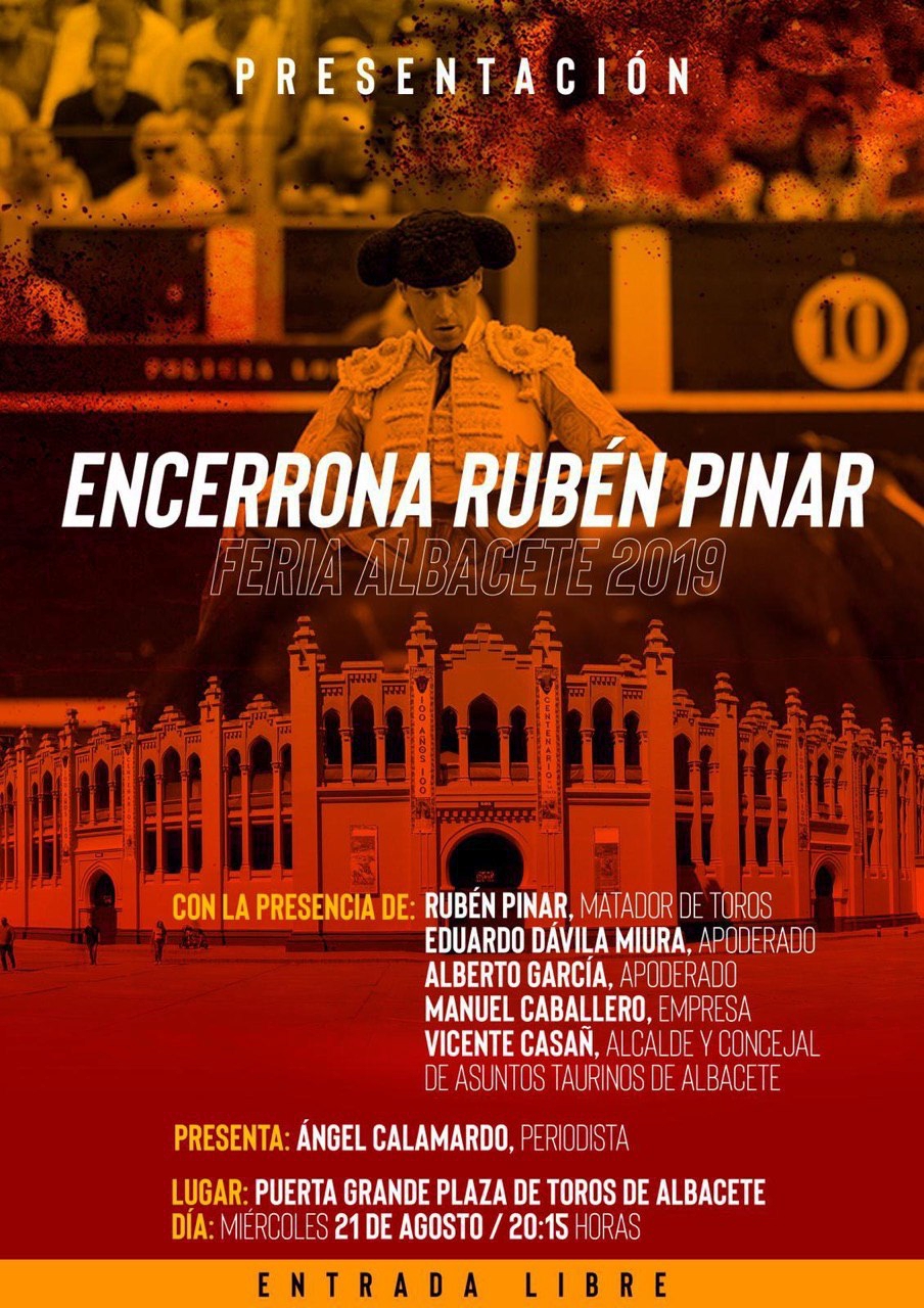 El acto estará presentando por el afamado periodista albaceteño Ángel Calamardo y contará con la presencia del propio Rubén Pinar, sus apoderados, Alberto García y Eduardo Dávila Miura a la sazón, el ex torero y ahora empresario de la plaza Manuel Caballero y Vicente Casañ, alcalde de Albacete y concejal de Asuntos Taurinos.