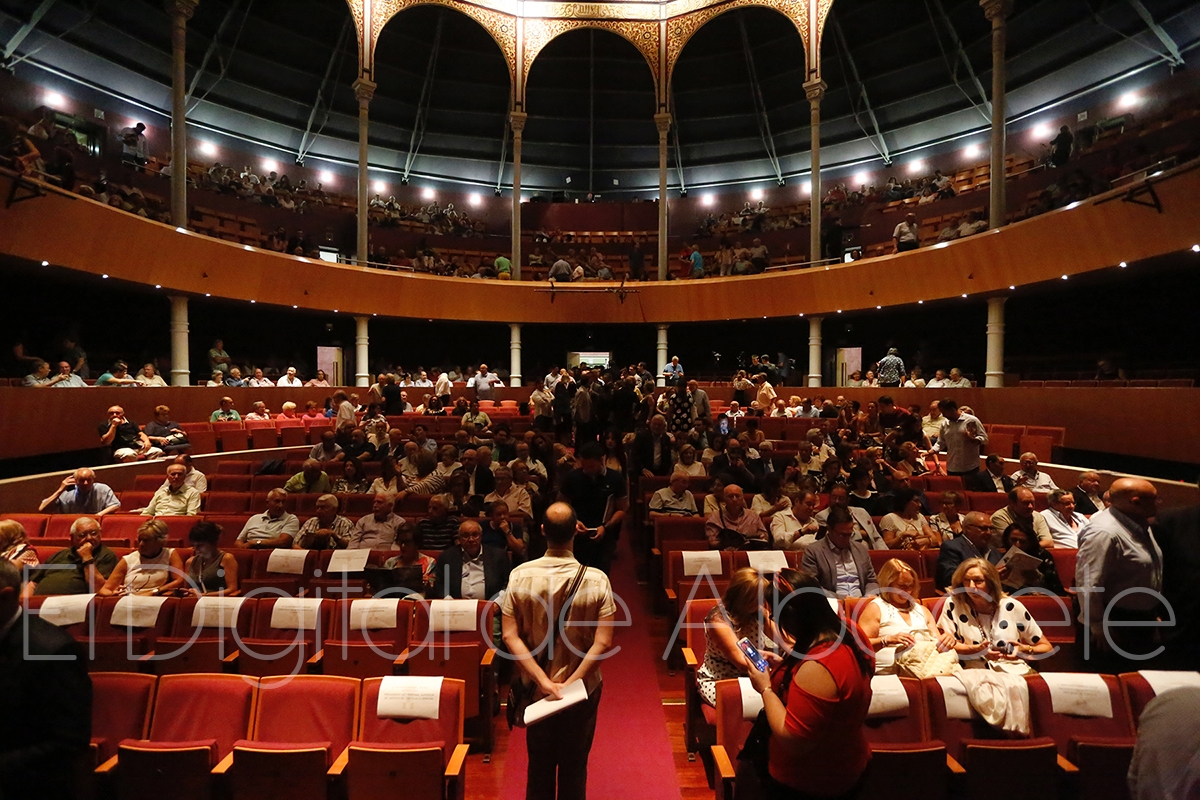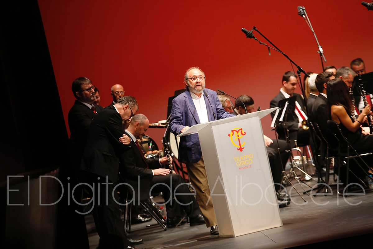 Como si de una corrida de toros se tratase, el Teatro Circo se convertía por unos instantes en un auténtico coso taurino y la Unión Musical ‘Ciudad de Albacete’ daba inicio a la velada con el pasodoble ‘AMIThE’ en sustitución del reconocido pasodoble ‘Pan y toros’ que interpretan cada tarde en la plaza de toros de la capital.