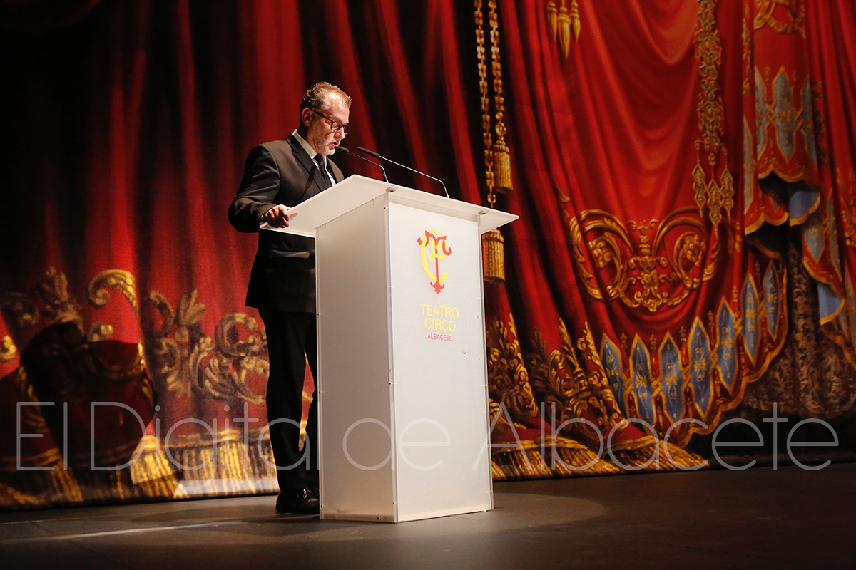 Doblemente agradecido se mostraba el pregonero, al tener la oportunidad de lanzar su pregón taurino desde su tan querido Teatro Circo. Algo que considera “un regalo” porque “también soy aquel joven que hace 25 años cuando este teatro estaba cerrado y abandonado a su serte tocaba la puerta del escenario por la noche y le susurraba : ¡Aguanta!”, manifestaba el protagonista de esta noche de toros en Albacete.