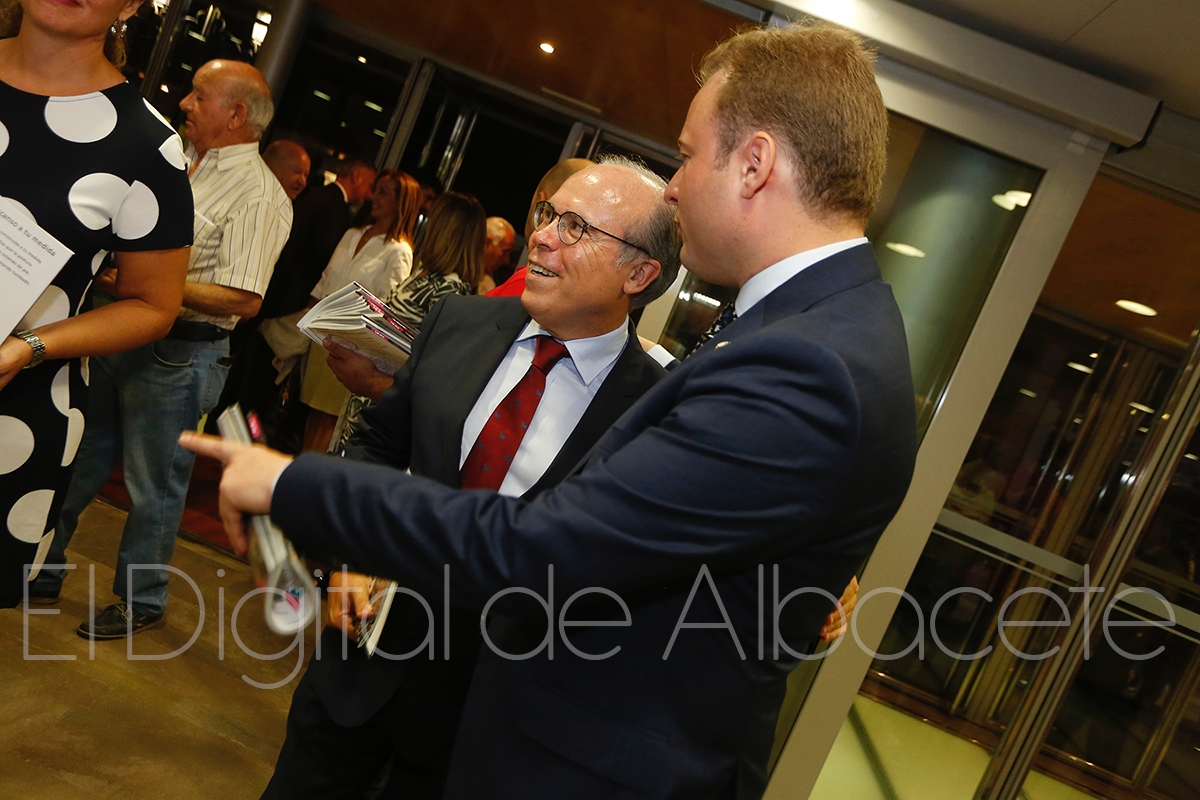 No ha faltado tampoco a la cita pregonera el presidente de la Diputación Provincial, Santiago Cabañero, quien junto al diputado provincial Francisco García Alcaraz, arropaba con su presencia al encargado de proclamar dicho pregón y buen amigo con el que, además, comparte afición al mundo del toro.