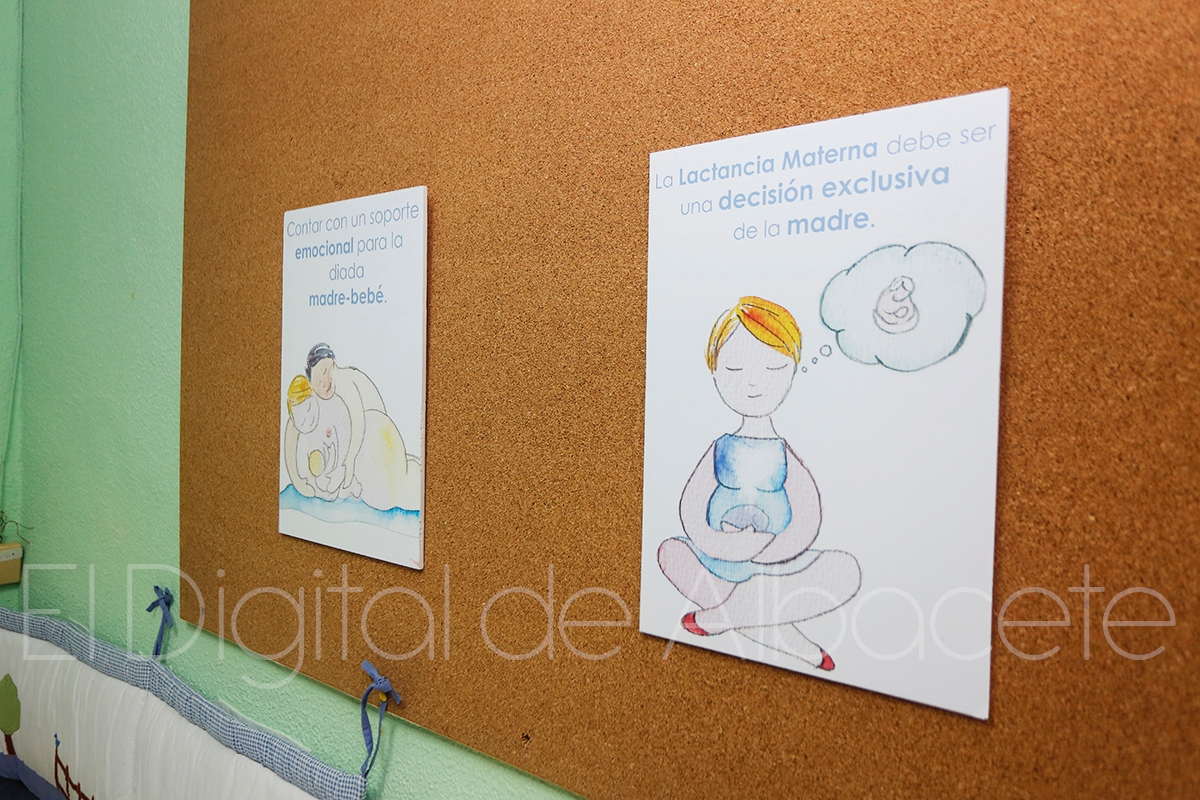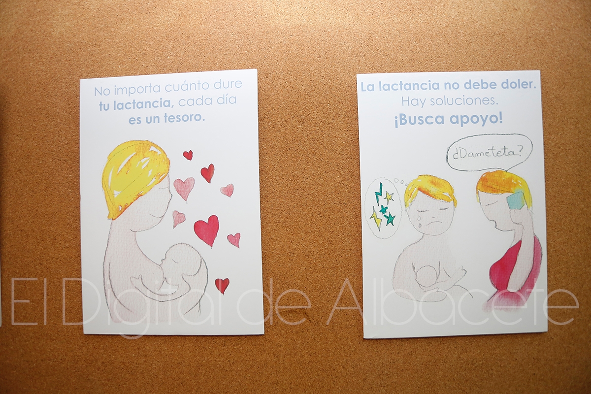 Situación que “debe normalizarse”, inciden desde la asociación y que se ha encargado de plasmar en 10 láminas la pintora Rosa González y que presidirán esta sala de lactancia en la Feria de Albacete. Una exposición que también ha estado expuesta en el hall del Hospital de Albacete y que “con diez sencillas frases acompañadas de una ilustración realizada en acuarela”, explicaba González, recoge un decálogo sobre la lactancia.