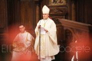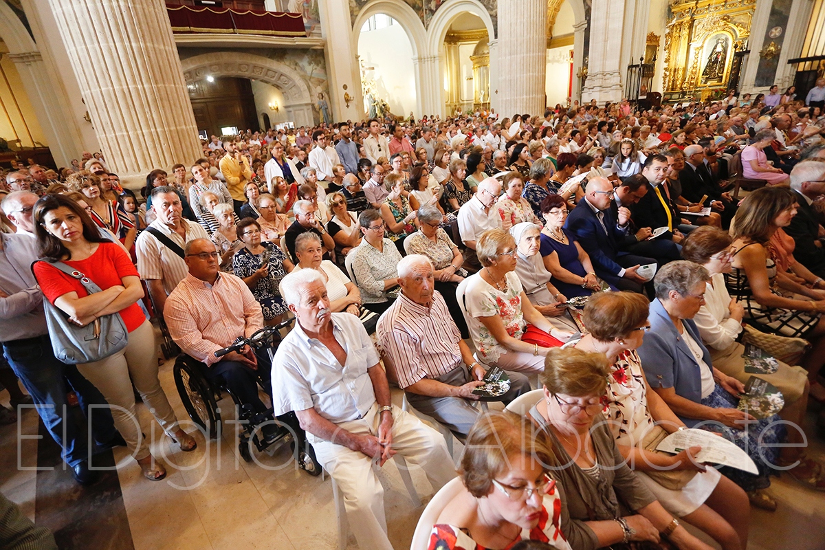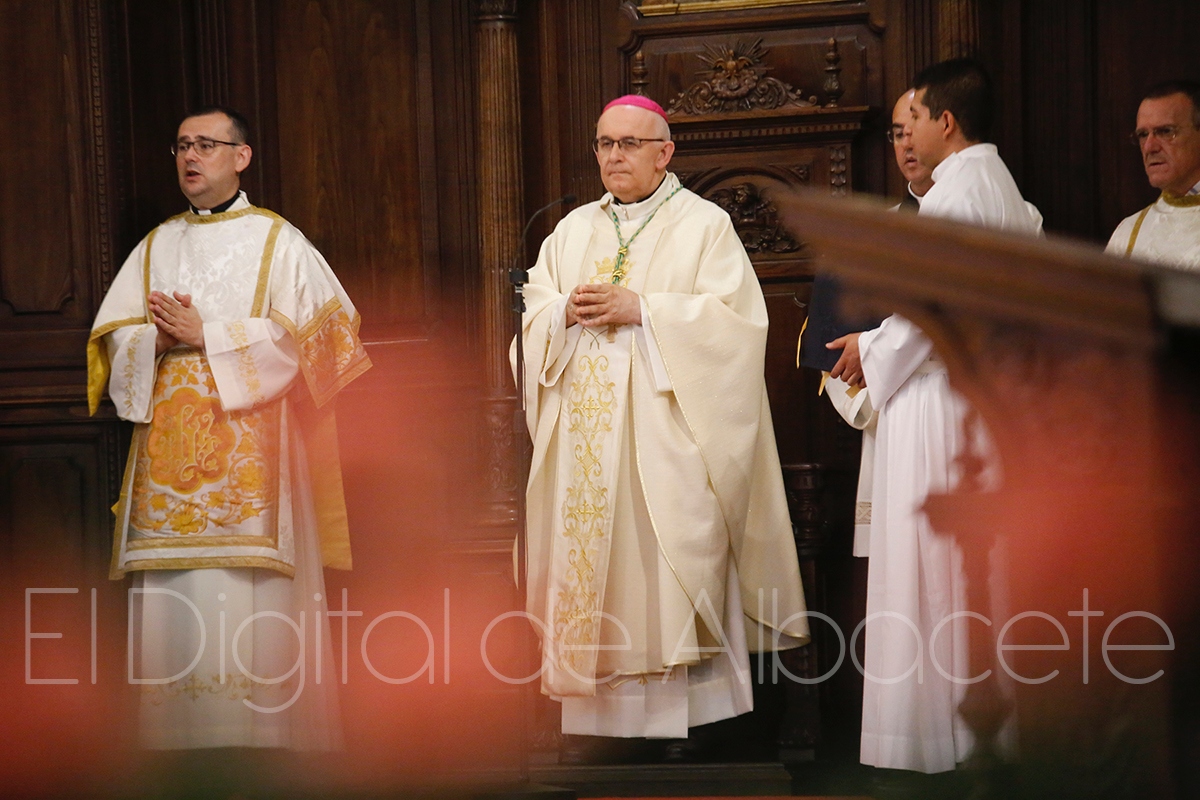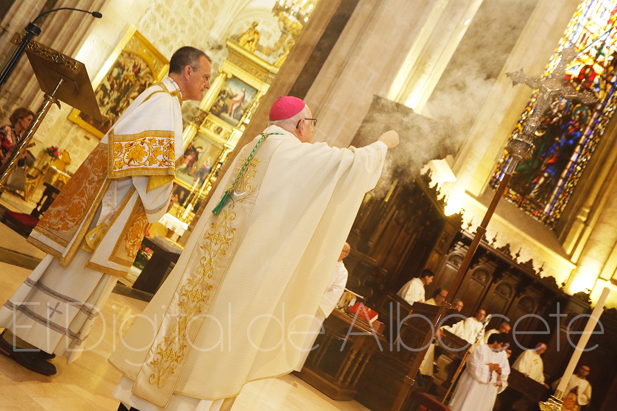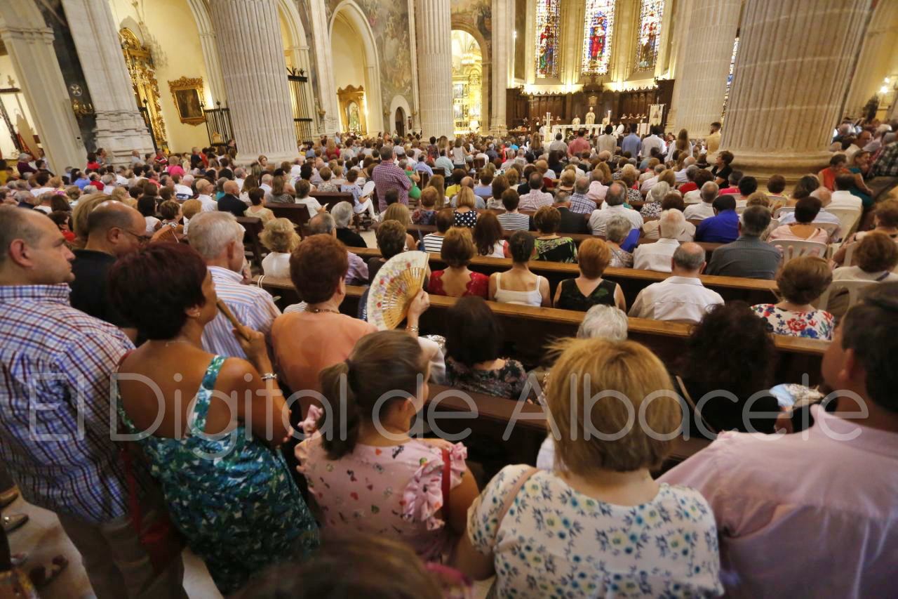 El repique de campanas de la Catedral de Albacete ha llamado, como es de costumbre cada 8 de septiembre, a los albaceteños que han acudido a la Misa Pontifical con motivo de la festividad de la Virgen de Los Llanos. Una celebración litúrgica que ha aglutinado a cientos de feligreses llenando el Templo, como en contadas ocasiones puede verse, en una homilía oficiada por el Rvrdmo. Obispo Sr. D. Ángel Fernández de la Diócesis de Albacete, en la que sentados, de pie o casi a las puertas de la Catedral nadie ha querido perderse un acto que, además, ha estado acompañado por el celestial Coro Universitario de Albacete.