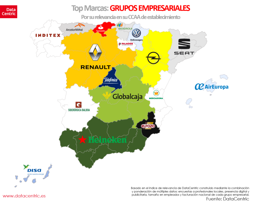 Datacentric, empresa especializada en el análisis de datos para marketing, ha elaborado un estudio en el que desgrana, región por región, nuestra identidad en función de las marcas que consumimos. Analiza distintos productos y servicios: banca, eléctricas, cerveza, leche, empresas de telefonía, supermercados, cadenas de ropa, modelo de coche o productos cosméticos, etc., tienen en nuestro país. Toda esta información se puede consultar en la página web de la empresa.