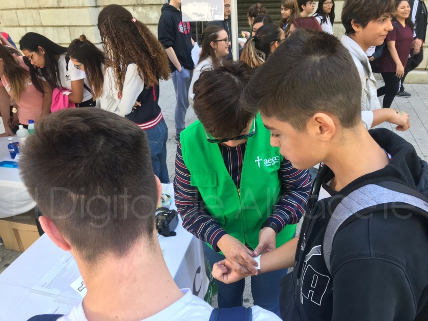 Es por ello que la Asociación Española Contra el Cáncer en Albacete ha celebrado el Día Mundial por la Investigación en Cáncer con un evento en la puerta del IES Bachiller Sabuco donde los alumnos han dado un salto para que no pare la investigación en cáncer. “Ellos tienen que impulsarlo también y apoyarnos en todo este tipo de actos que estamos haciendo”, subraya Valero.