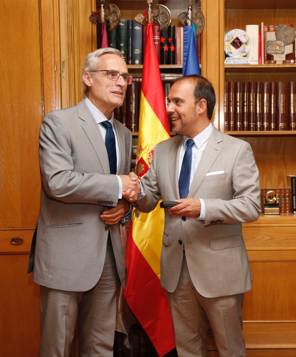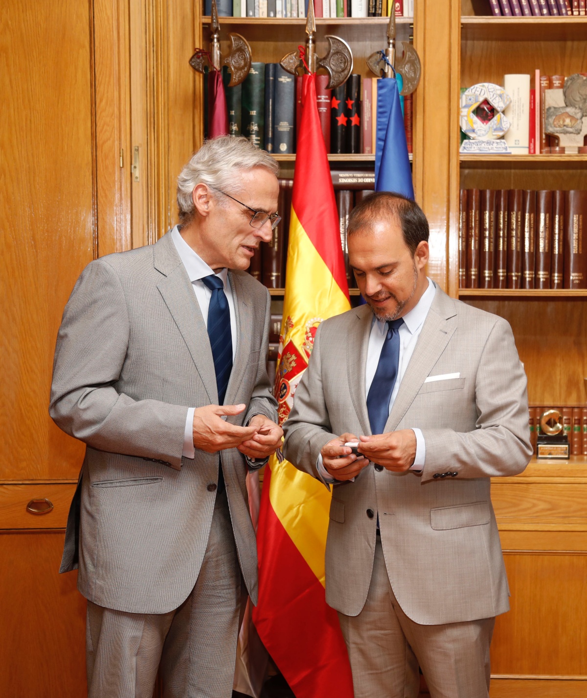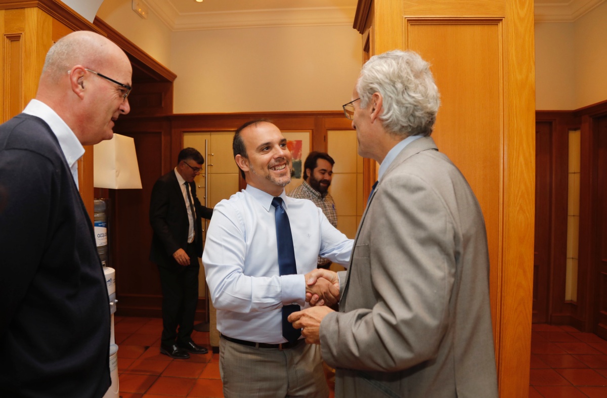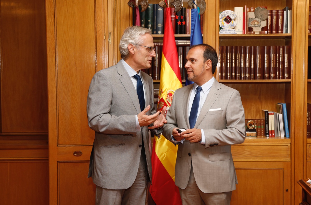 El presidente de las Cortes de Castilla-La Mancha, Pablo Bellido, ha recibido a primera hora de esta mañana, antes de la sesión plenaria, al fiscal superior de Castilla-La Mancha, José Martínez Jiménez, quien le ha hecho entrega de una copia de la Memoria Anual de la Fiscalía.