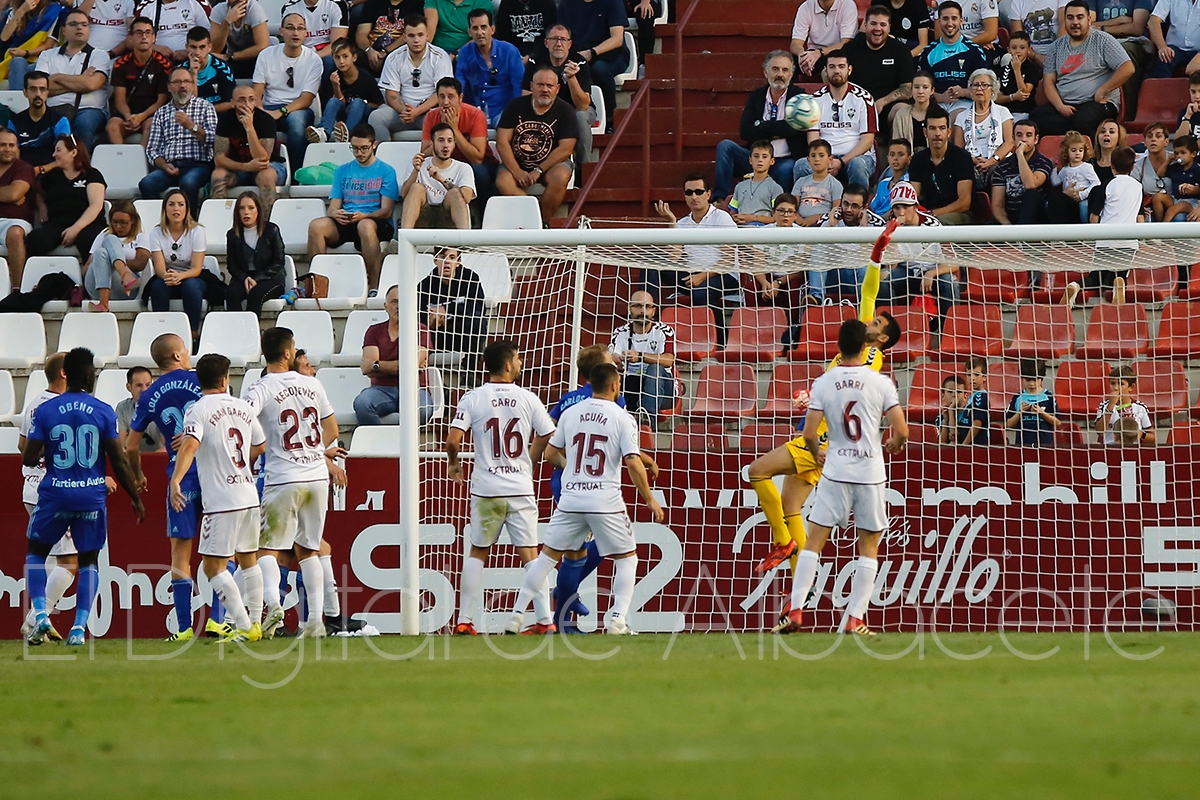 Tomeu Nadal salvó a los suyos en el minuto 27 con un auténtico ‘paradón’ marca de la casa, tras un durísimo disparo de Saúl Berjón cargado de malas intenciones para los intereses del Albacete Balompié y que de no haber sido por la manopla de portero mallorquín del Alba habría abierto la lata en el Carlos Belmonte.