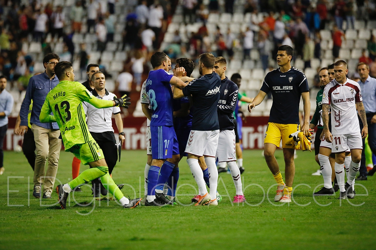 El gol, como suele pasar, sentó muy bien al que lo marca y muy mal al que lo recibe, poniendo desde el tanto más contra las cuerdas el Albacete Balompié al Oviedo y regalando desde entonces y hasta llegar al descanso los mejores minutos de juego a los 9069 espectadores congregados este domingo en el Carlos Belmonte, pudiendo incluso haber aumentado ventajas en el marcador antes de llegar al tiempo de asueto.