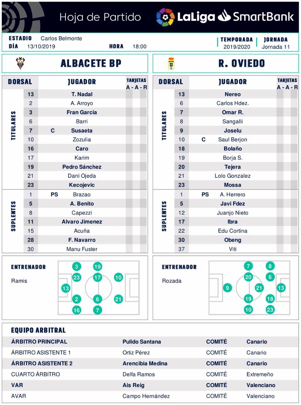 Así pues, Tomeu Nadal estuvo en portería; Caro en el lateral derecho, Fran García en el izquierdo y en el centro de la defensa estuvieron Álvaro Arroyo y Kecojevic; el doble pivote fue para Barri y Karim Azamoum, estando Dani Ojeda en el extremo diestro y Susaeta en el siniestro. Como decíamos, Zozulia y Pedro fueron los que ocuparon desde el inicio las posiciones de ataque.