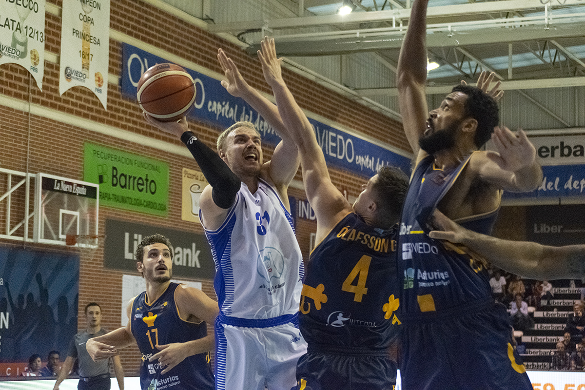 Llegaron los 10 minutos finales y la defensa visitante junto con los nervios pudieron con los asturianos que terminaron el encuentro con 17 pérdidas de balón forzadas debido a las alternativas defensivas de los de Rubén Perelló, que marcaron el ritmo de partido durante la mayor parte del encuentro.