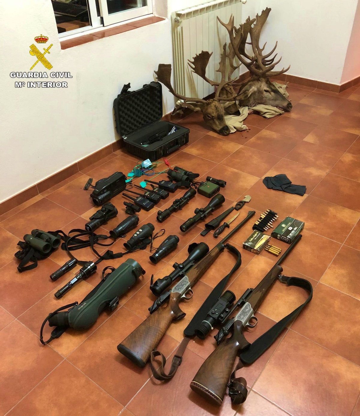 La Guardia Civil incautó, además, de dos rifles, visores térmicos, visores nocturnos, varias emisoras y otros instrumentos prohibidos para el ejercicio de la caza a mano.