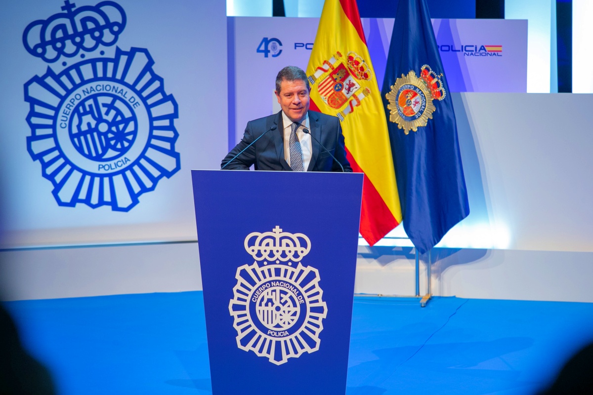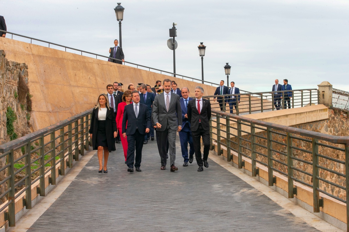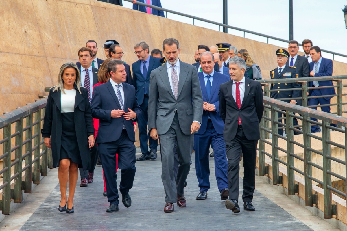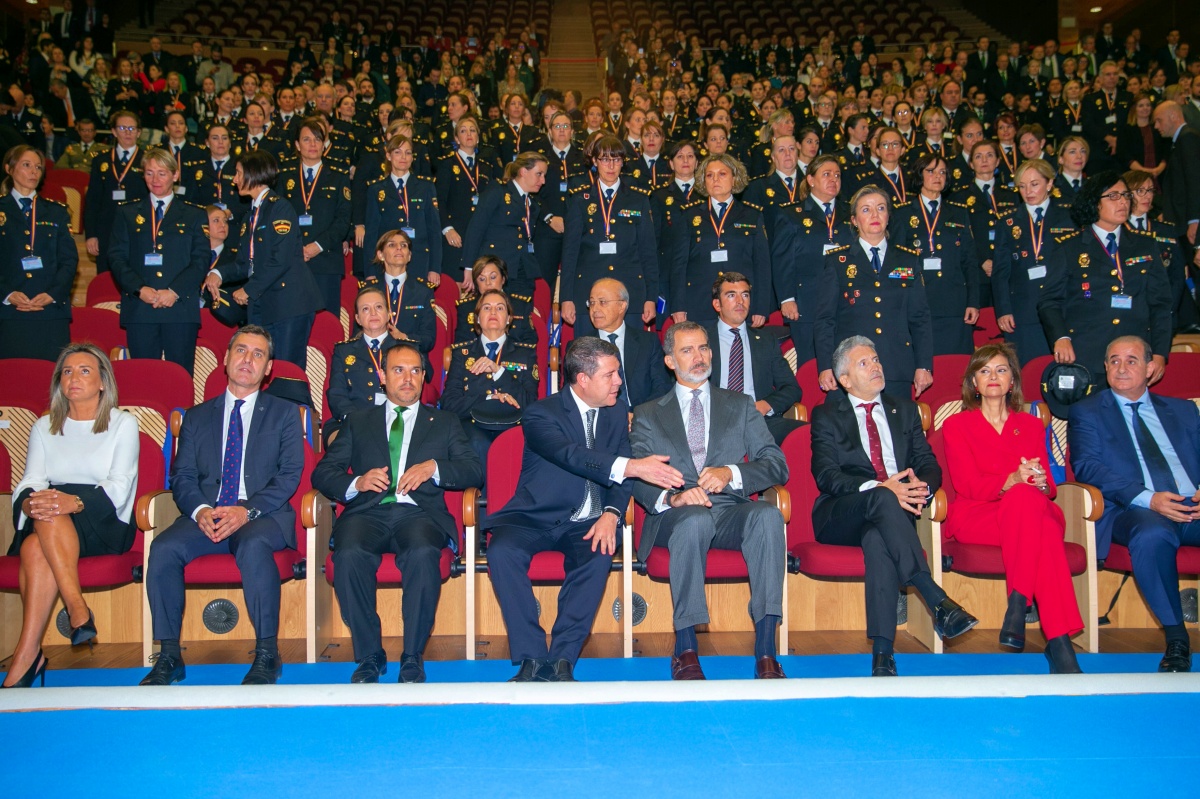 A su llegada al Palacio de Congresos de Toledo sobre las 11.00 horas, el Rey ha sido recibido por el presidente de Castilla-La Mancha, Emiliano García-Page; el ministro de Interior, Fernando Grande-Marlaska; la secretaria de Estado de Seguridad, Ana Botella; el director general de la Policía Nacional, Francisco Pardo; y el director operativo adjunto de la Policía Nacional, Ángel González.
