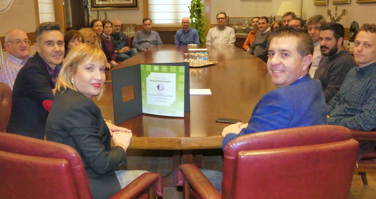 El presidente de la Diputación ha felicitado personalmente a quienes conforman el Servicio de Modernización Administrativa y TIC de la Diputación, creador de SEDIPUALB@, tras el nuevo Premio de ámbito europeo que la Plataforma recibía la pasada semana en Maastricht