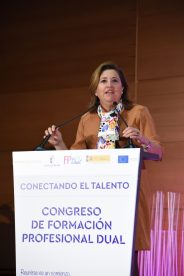 A la Formación Profesional Dual como puerta de entrada al mercado de trabajo se ha referido también durante su intervención la consejera de Economía, Empresas y Empleo, Patricia Franco, que ha reiterado la apuesta del Ejecutivo autonómico por una enseñanza que apega el talento a las necesidades de las empresas y que supone una garantía formativa a través de los certificados de profesionalidad.