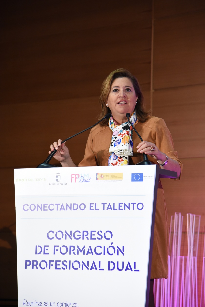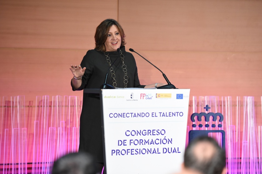 La consejera ha subrayado también que este encuentro “nos va a permitir valorar, evaluar y analizar una formación, la Dual, que lleva siete años en Castilla-La Mancha”, al tiempo que ha agradecido su presencia tanto al profesorado asistente como a los representantes del sector empresarial.